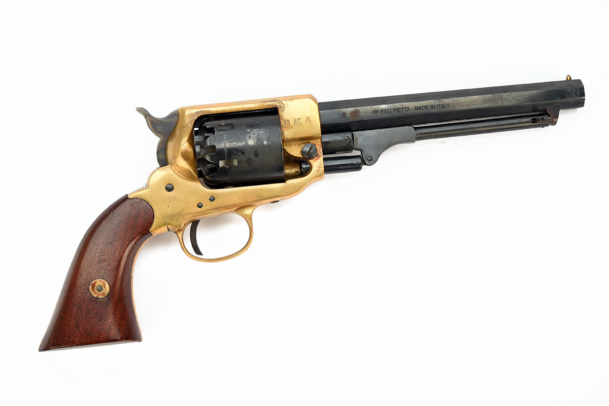 A REPRODUCTION PIETTA WHITNEY .36 PERCUSSION REVOLVER, serial no. B009775 with blued octagonal 6 1/2in. barrel, blued cylinder, solid brass frame and smooth walnut grips