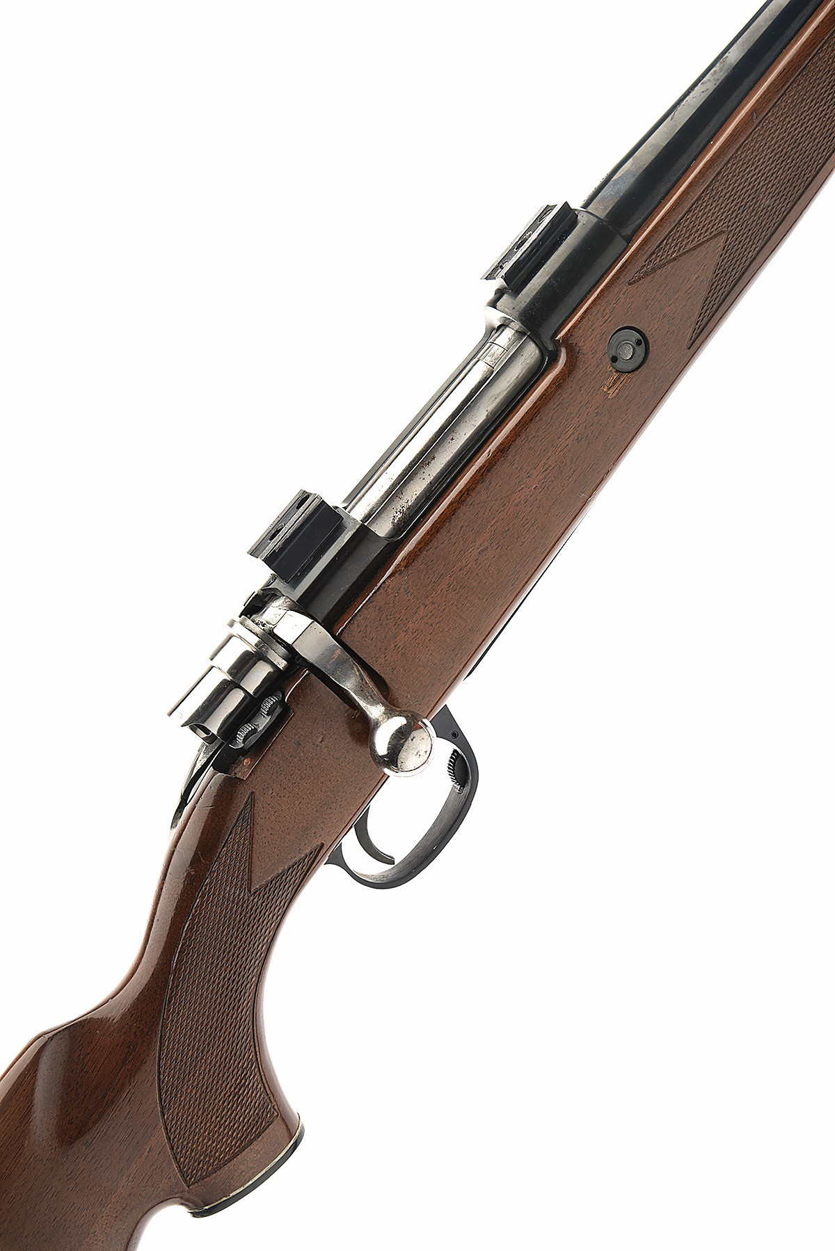 PARKER HALE .308 W BOLT-MAGAZINE SPORTING RIFLE, serial no. B-08472, circa 1952, 22 1/4in. nitro barrel, ramp-mounted bead fore-sight, folding leaf rear-sight, scope rail, manual safety, hinged floorplated with scroll and rams head, pistolgrip stock with cheekpiece, leather sling