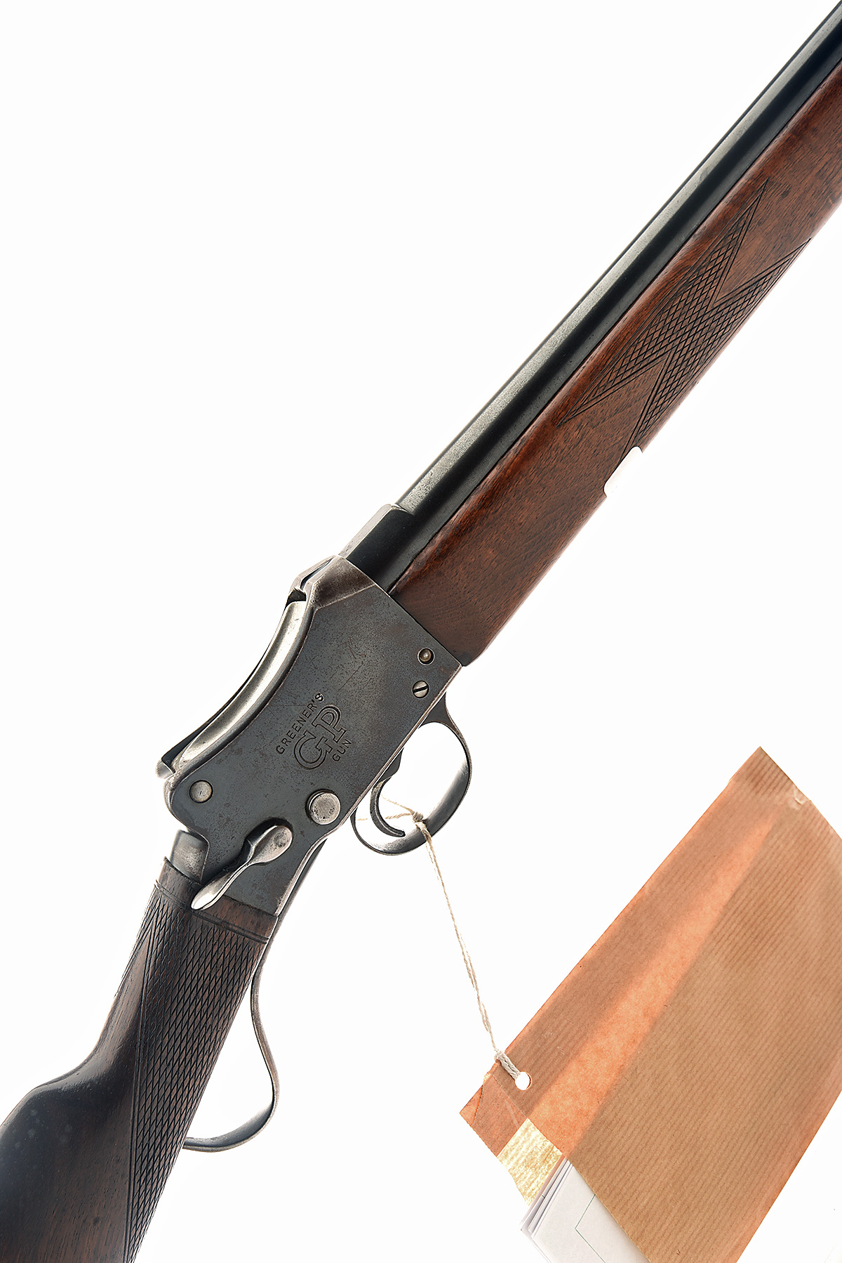 W.W. GREENER 12-BORE 'GREENER'S G.P. GUN' MARTINI-ACTION SHOTGUN, serial no. 39481, for 1962, 34in. nitro ribless barrel, 2 3/4in. chamber, bored approx. 3/4 choke, plain action, automatic sidelever safety, 14 1/4in. stock including trademark buttplate, sling swivels, together with a facsimile of the Greener GP instruction manual