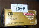 20 ROUNDS .338 WIN MAG AMMUNITION BY FEDERAL, 225grn TROPHY BONDED SP, #P338T1 BATCH 08916