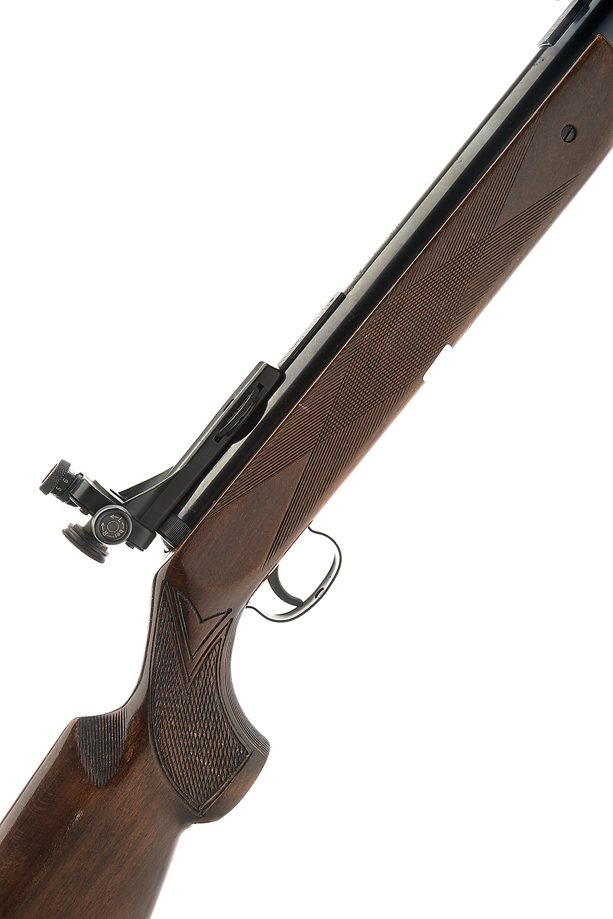 A SCARCE ORIGINAL MODEL 35 'B' .22 AIR-RIFLE, no visible serial number, mid 1960's production, with blued and sighted 19in. barrel, blued air-chamber with applied telescopic sight rail fitted with a period diopter peep-sight, beech half-stock without cheek-piece and chequered and grooved at grip and fore-end, generally collector's external condition