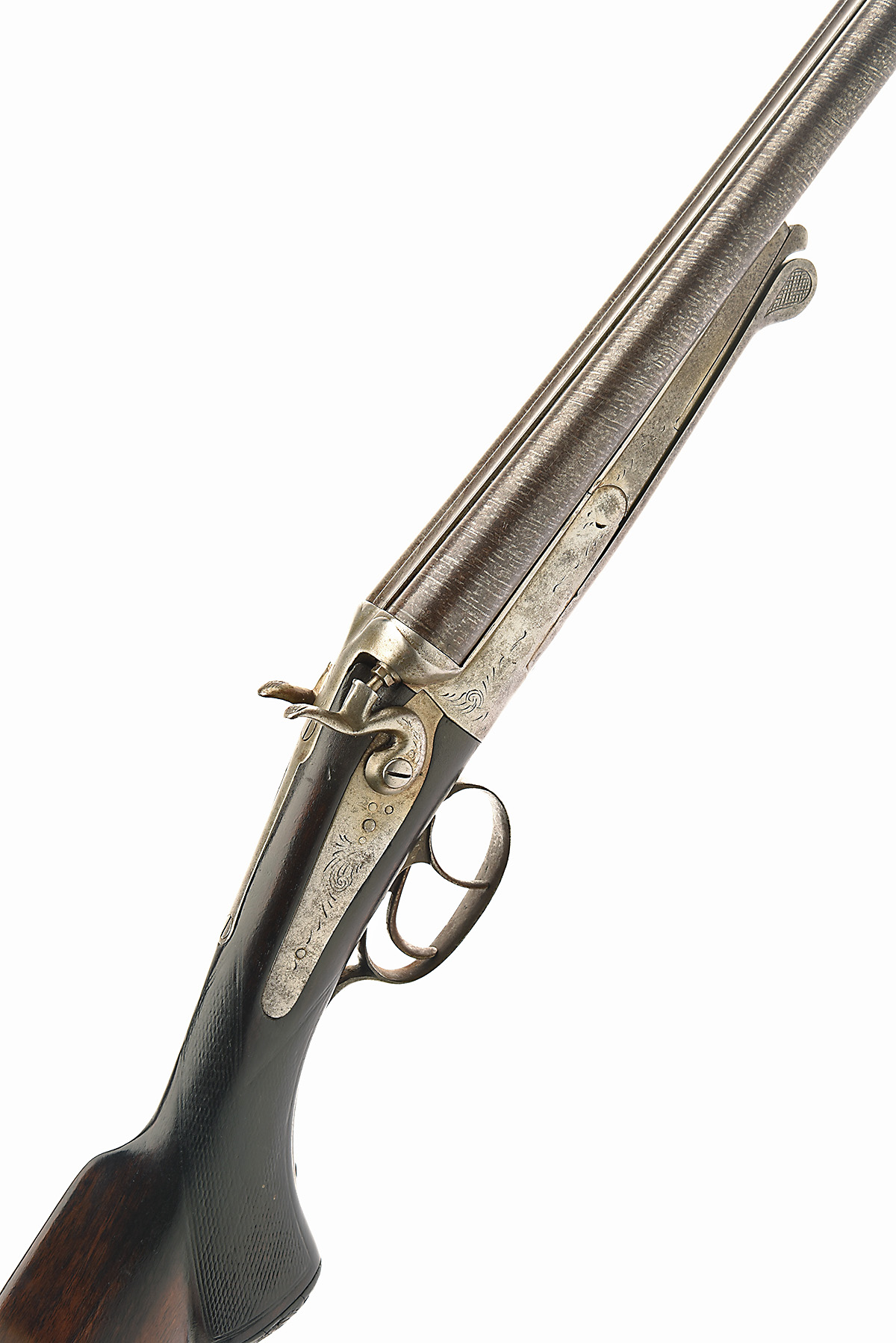* A 24-BORE DOUBLE-BARRELLED HAMMERGUN, BELGIAN 'MODEL LEFAUCHEUX-TYPE, serial no. 25798, circa 1900, 26 1/2in. black powder only damascus barrels, Lefaucheux-type action, back-action sidelocks with partial acanthus scroll engraving, bright finish, 14 1/8in. pistolgrip stock with cheekpiece, pistolgrip cap, including steel buttplate, sling swivels
