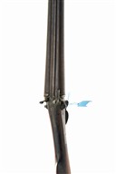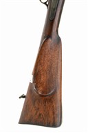 * A 12-BORE PINFIRE CONTINENTAL DOUBLE-BARRELLED HAMMER-GUN UNSIGNED, serial no. 806, circa 1875, with 29 3/4in. browned barrels, Lefaucheux style action with forward facing under-lever, plain back-action locks (one hammer nose absent), walnut butt-stock and captive iron fore-end