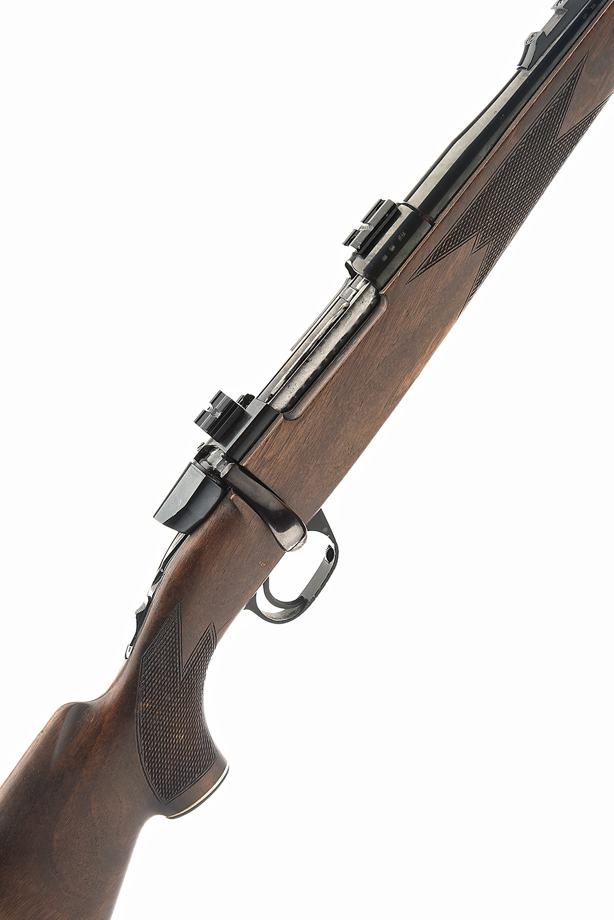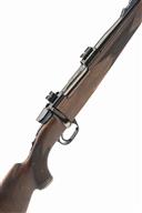 20 1/2in. nitro barrel, hooded ramp-mounted bead fore-sight, rear-sight missing, scope rail, manual tang safety, hinged floorplate, well-figured pistolgrip stock with ventilated recoil pad and cheekpiece, sling swivels