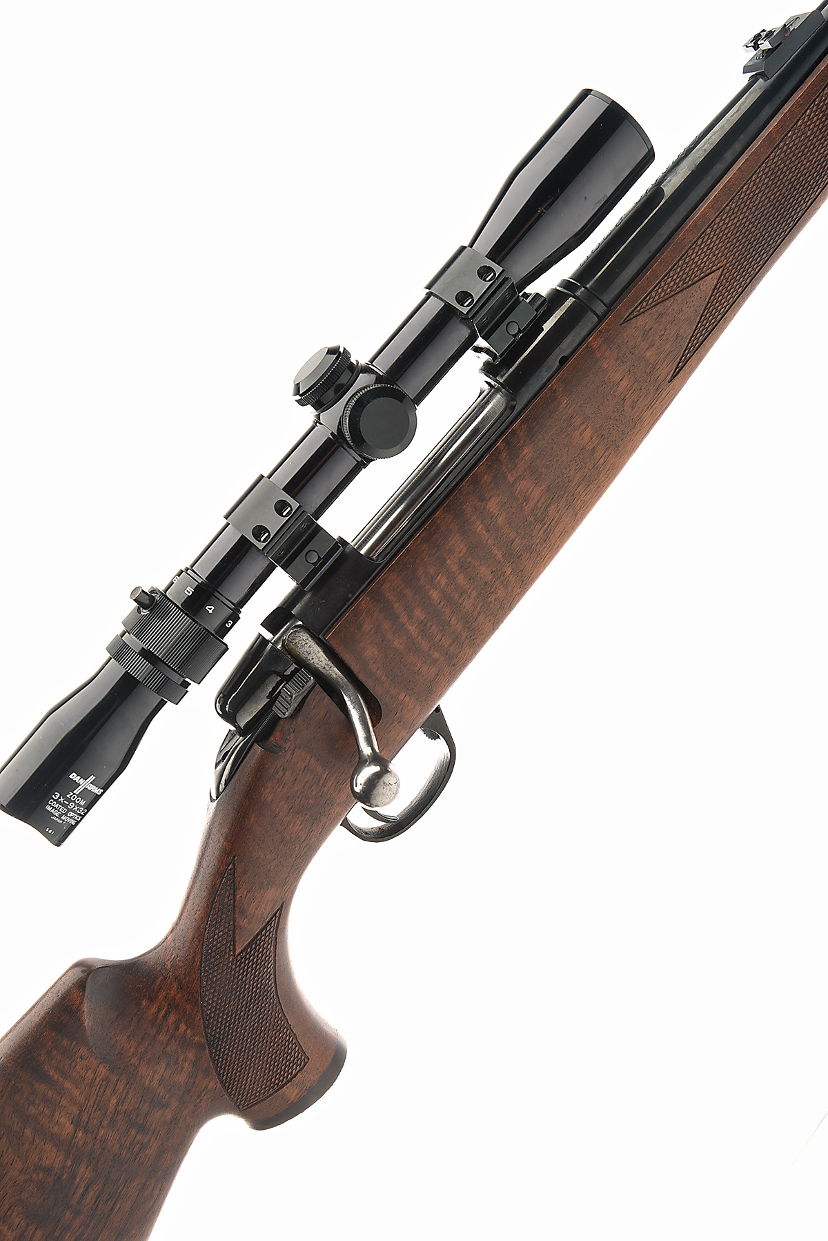 ** HUSQVARNA 6,5x55 '2000' BOLT-MAGAZINE SPORTING RIFLE, serial no. H00041, 23 3/4in. nitro barrel, ramp-mounted blade fore-sight, folding leaf rear-sight, fitted with a Dan Arms 3-9x32 telescopic sight, manual safety, hinged floorplate, well-figured pistolgrip stock