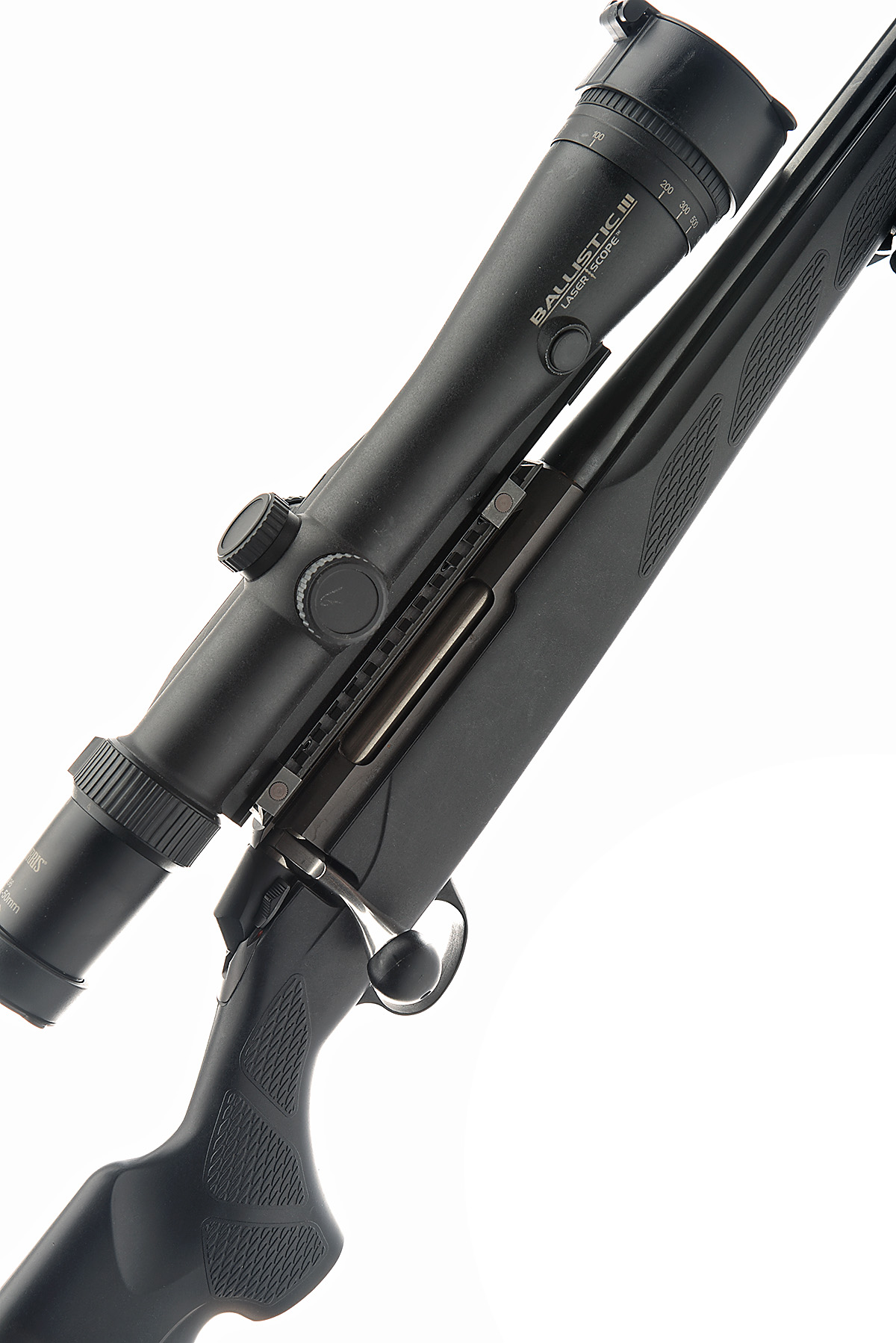 22 1/4in. unsighted nitro barrel, fitted with a Burris X96 4x-16x50mm Ballistic III laser scope, manual safety, detachable magazine4 missing, folding bipod with extendable legs, synthetic pistolgrip stock with recoil pad, sling eyes
