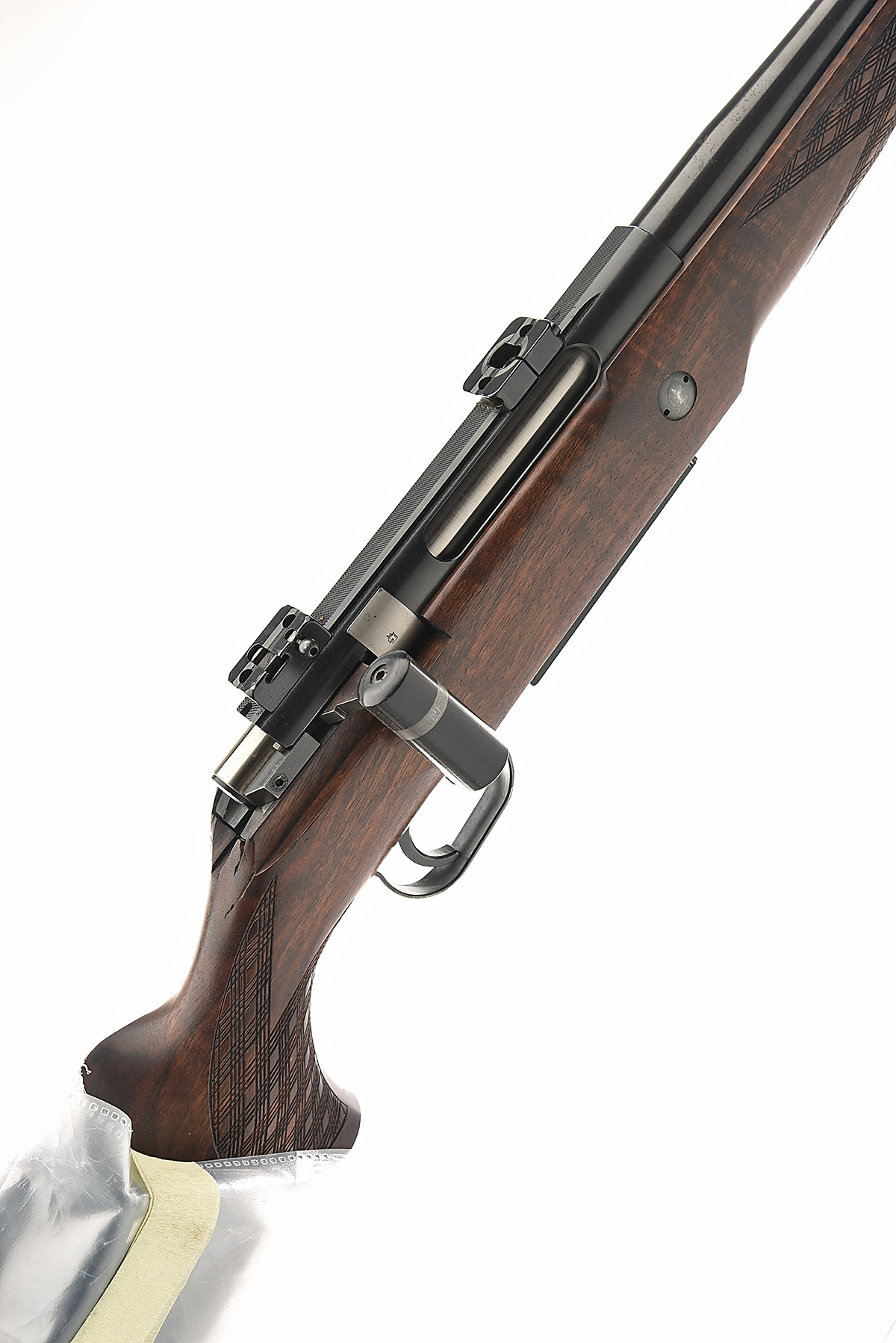 25in. unsighted nitro barrel (including muzzle-break, fitted with under parts of Apel mounts, manual safety, 3 x detachable magazines, well-figured pistolgrip stock with recoil pad and cheekpiece, sling swivels