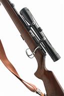 LEFT-HANDED ANSCHUTZ .22 LR 'MODELL 1415 - 1416' BOLT-MAGAZINE SPORTING RIFLE, serial no. 1397354, dated 1993, 22 1/2in. nitro barrel threaded for a sound moderator, ramp-mounted bead fore-sight, rear open sights, received fitted with a Schmidt & Bender 4x36 telescopic sight, serial no. 33972, detachable magazine (with spare), pistolgrip stock with canvas sling, 14in. pull