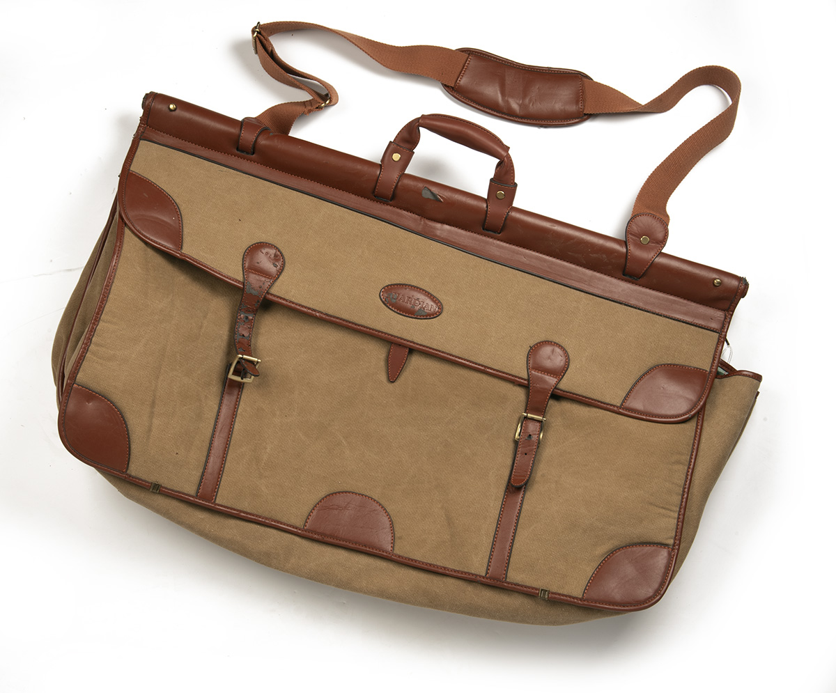 LARGE GUARDIAN CANVAS AND LEATHER TRAVEL BAG, with canvas and leather shoulder strap, leather carry handle, brass fittings