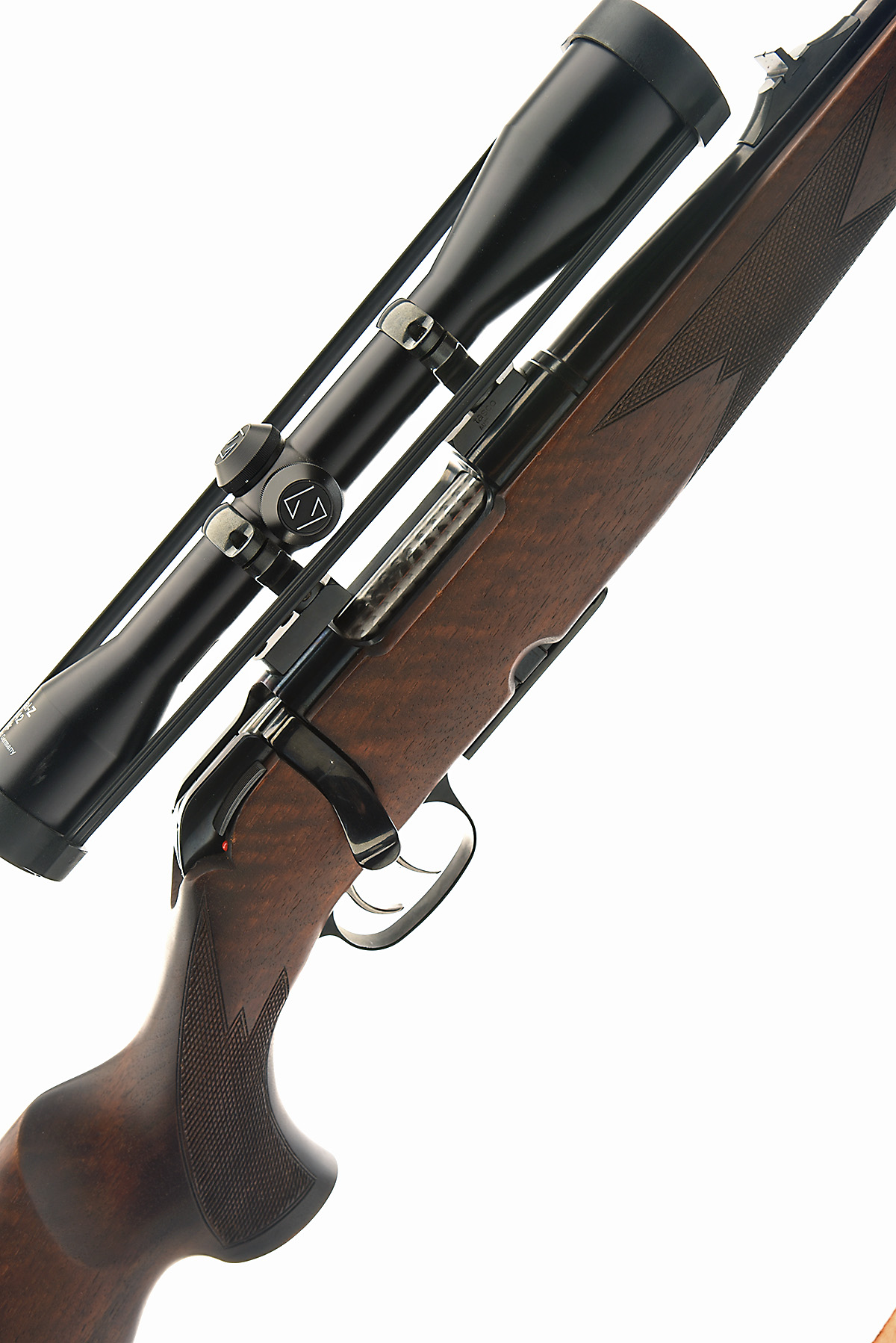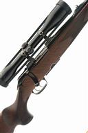 KRICO .243 WIN BOLT-MAGAZINE SPORTING RIFLE, serial no. 138989, circa 1990, 23 3/4in. nitro barrel, hooded ramp-mounted fore-sight, leaf rear-sight, fitted with a Zeiss Diatal-Z 6x42 T* telescopic sight, serial no. 370584, manual safety, detachable magazine, well-figured pistolgrip stock with ventilated recoil pad and cheekpiece, leather sling