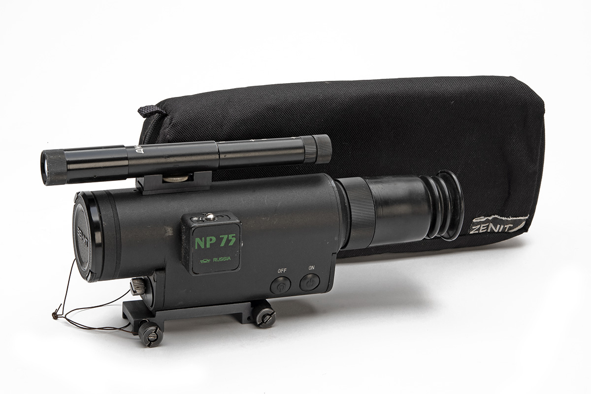 A 'OSPREY ZENITH' NP75 NIGHT VISION SCOPE, 3 x magnification, made in Russia, night vision untested, in a black case, untested