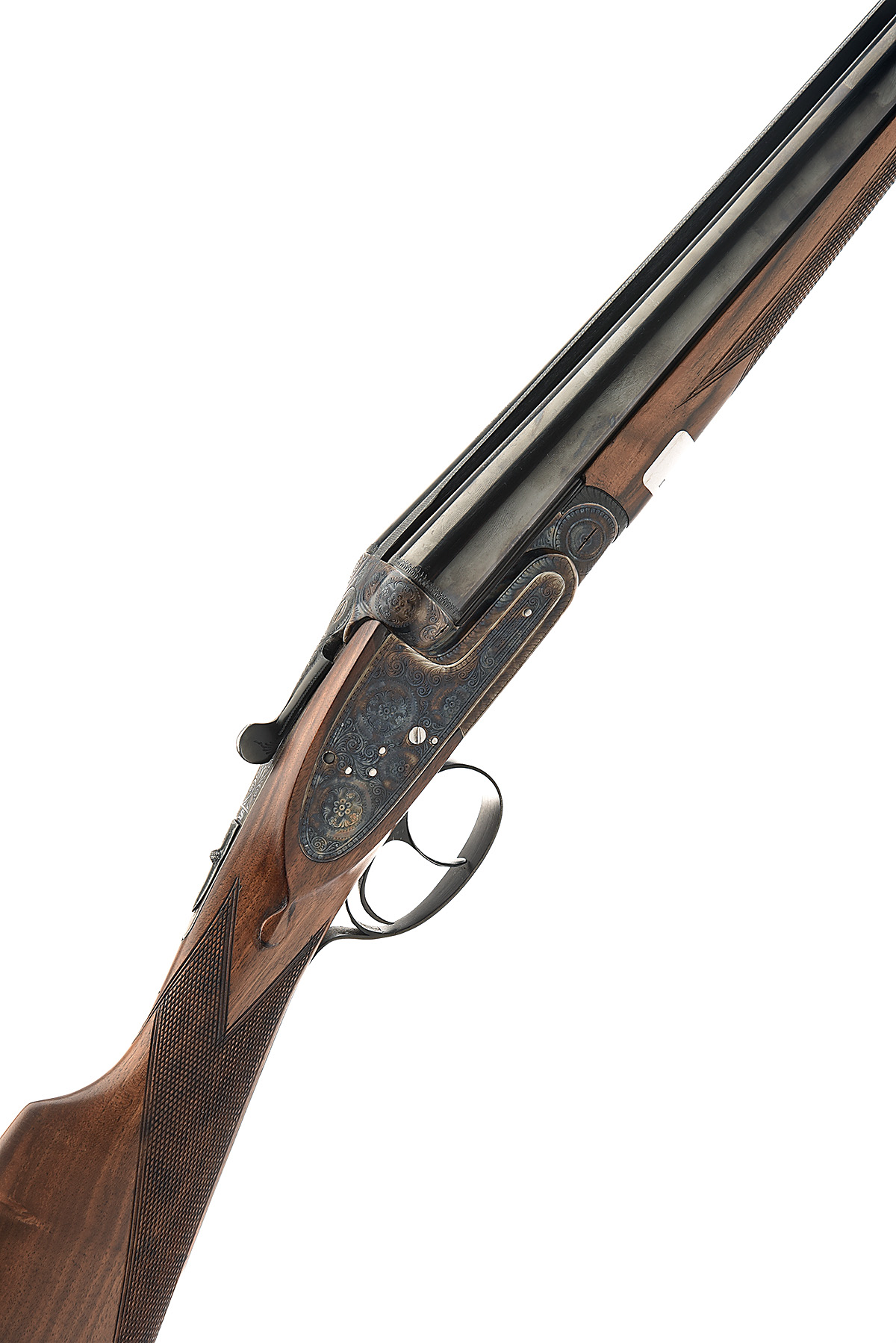 LAURONA 12-BORE HAND-DETACHABLE SIDELOCK EJECTOR, serial no. 148326, for 1976, 26in. nitro barrels with Churchill-style rib, 2 3/4in. chambers, bored approx. 1/2 and full choke, treble-grip action with hidden third-bite, removable striker discs, automatic safety with engraved 'S' detail, hand-detachable sidelocks, cocking indicators, articulated front trigger, border, acanthus scroll and floral bouquet engraving, retaining virtually full original colour-hardening and finish, 14 1/2in. stock, weight 6lb. 5oz.