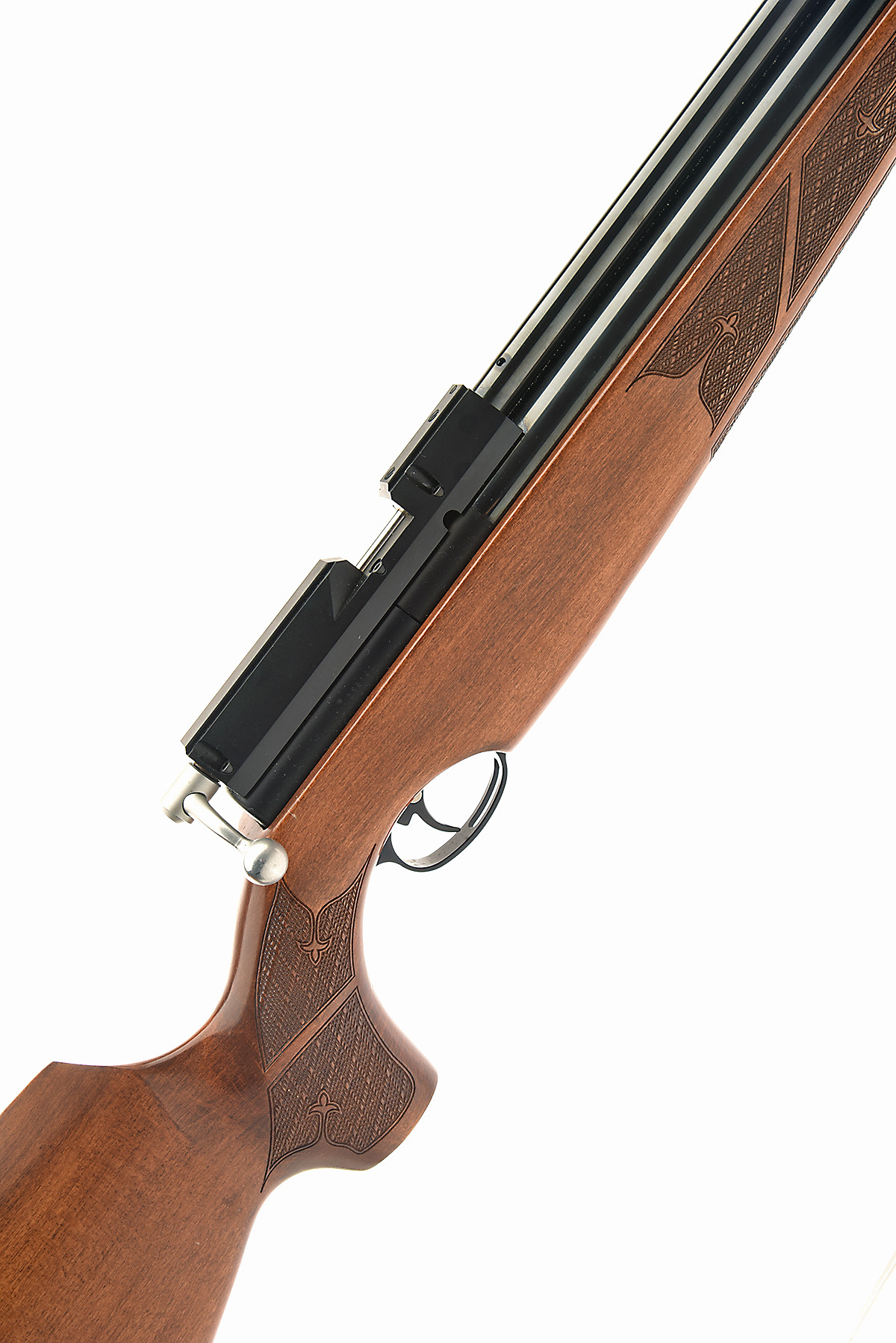 AN FAC-RATED AIR ARMS S400 EXTRA FAC .22 PRE-CHARGED PNEUMATIC, serial no. 062140, with 27in. barrel including full-length sleeve sound moderator, bolt action single-shot receiver, under-barrel air-chamber and chequered beech half-stock, tested,