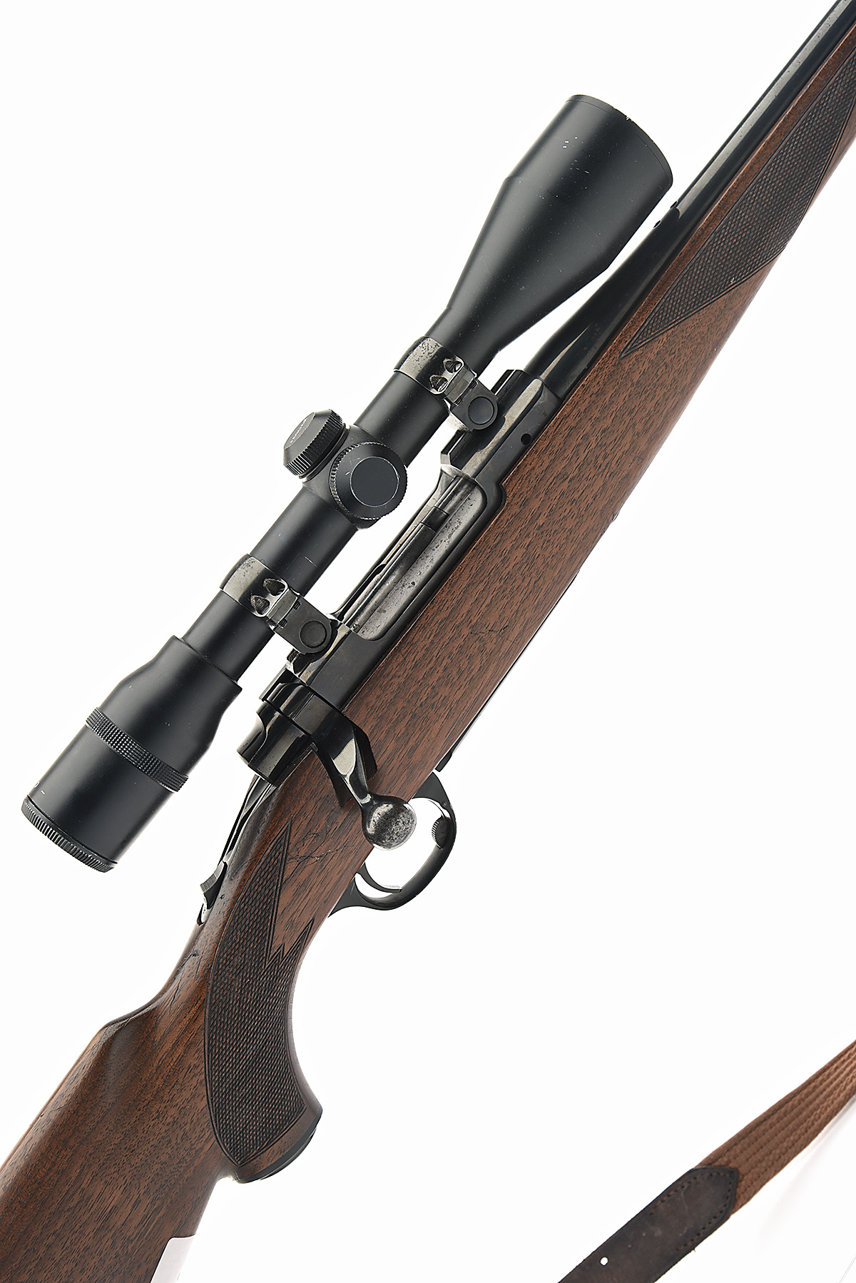 RUGER .308 WIN 'M77' BOLT-MAGAZINE STUTZEN SPORTING RIFLE, serial no. 77-71377, circa 1984, 18 1/2in. nitro barrel, ramp-mounted bead fore-sight, rear-sight missing, fitted with a Lisenfeld 6x42 telescopic sight, manual tang safety, hinged floorplate, well-figured pistolgrip stock with recoil pad, leather sling