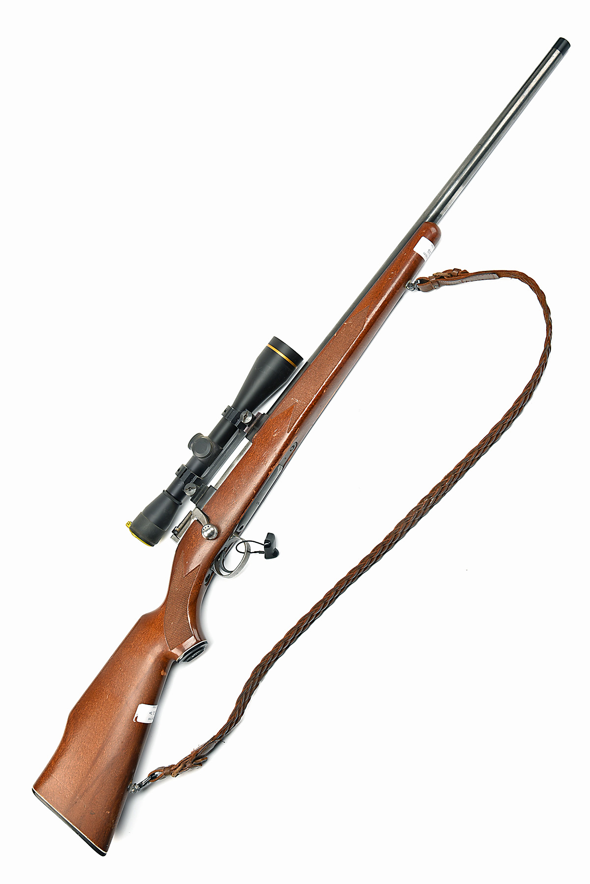 HUSQVARNA .22-250 'MODEL 1911' BOLT-MAGAZINE SPORTING RIFLE, serial no. 601669, circa 1911, 24 1/2in. unsighted nitro barrel, threaded for sound moderator, fitted with a Leupold FX-III 6x42 telescopic sight, manual flag safety, detachable floorplate, pistolgrip stock with cheek, leather sling