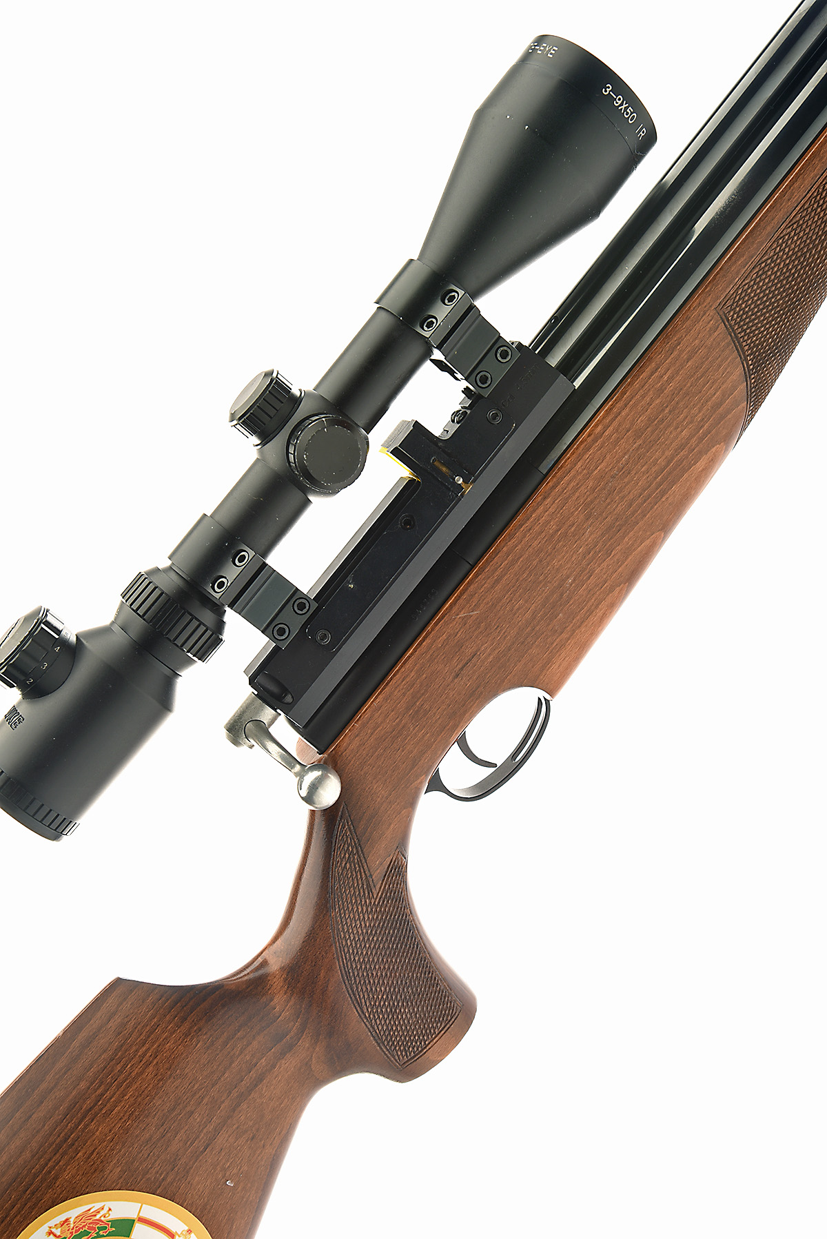 AN FAC-RATED AIR ARMS S410 XTRA FAC PRE-CHARGED PNEUMATIC AIR-RIFLE, serial no. 046763, with 27in. barrel including full-length sleeve sound moderator, bolt action receiver (no magazine), under-barrel air-chamber and chequered beech half-stock, untested, fitted with a Hawke 3-9x50 telescopic sight