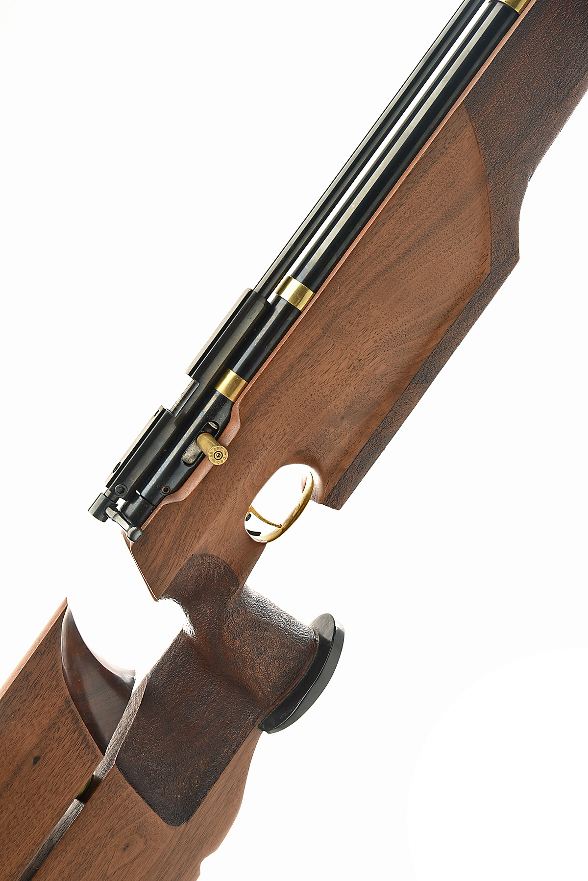A .177 FALCON PRE-CHARGED PNEUMATIC MATCH AIR-RIFLE, serial no. 99974, with blued 28in. barrel including detachable sound moderator, blued single-shot bolt action receiver with brass detailing, anatomical adjustable walnut right-hand half-stock and under-barrel air reservoir