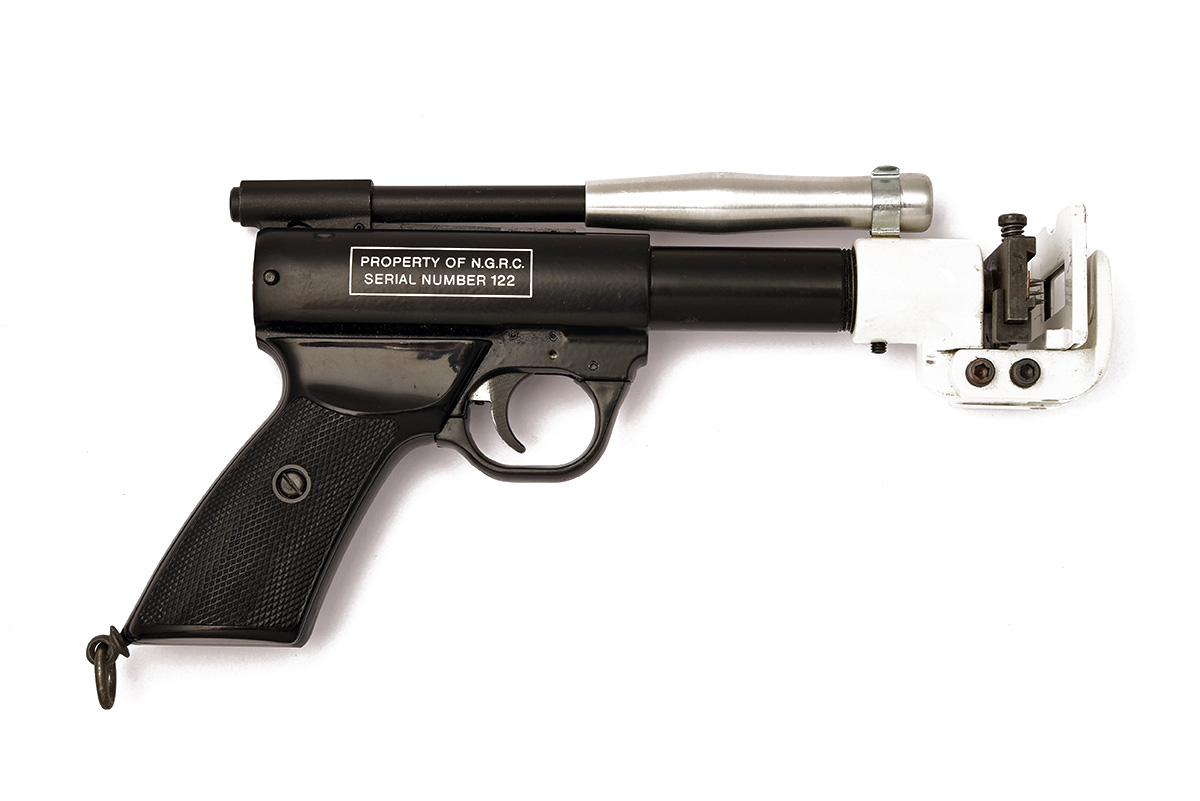 A SCARCE NATIONAL GREYHOUND RACING CLUB EAR TATTOO 'AIR-PISTOL' BY WEBLEY, serial no. 122, converted (possibly not by Webley) from a Webley Tempest air-pistol,