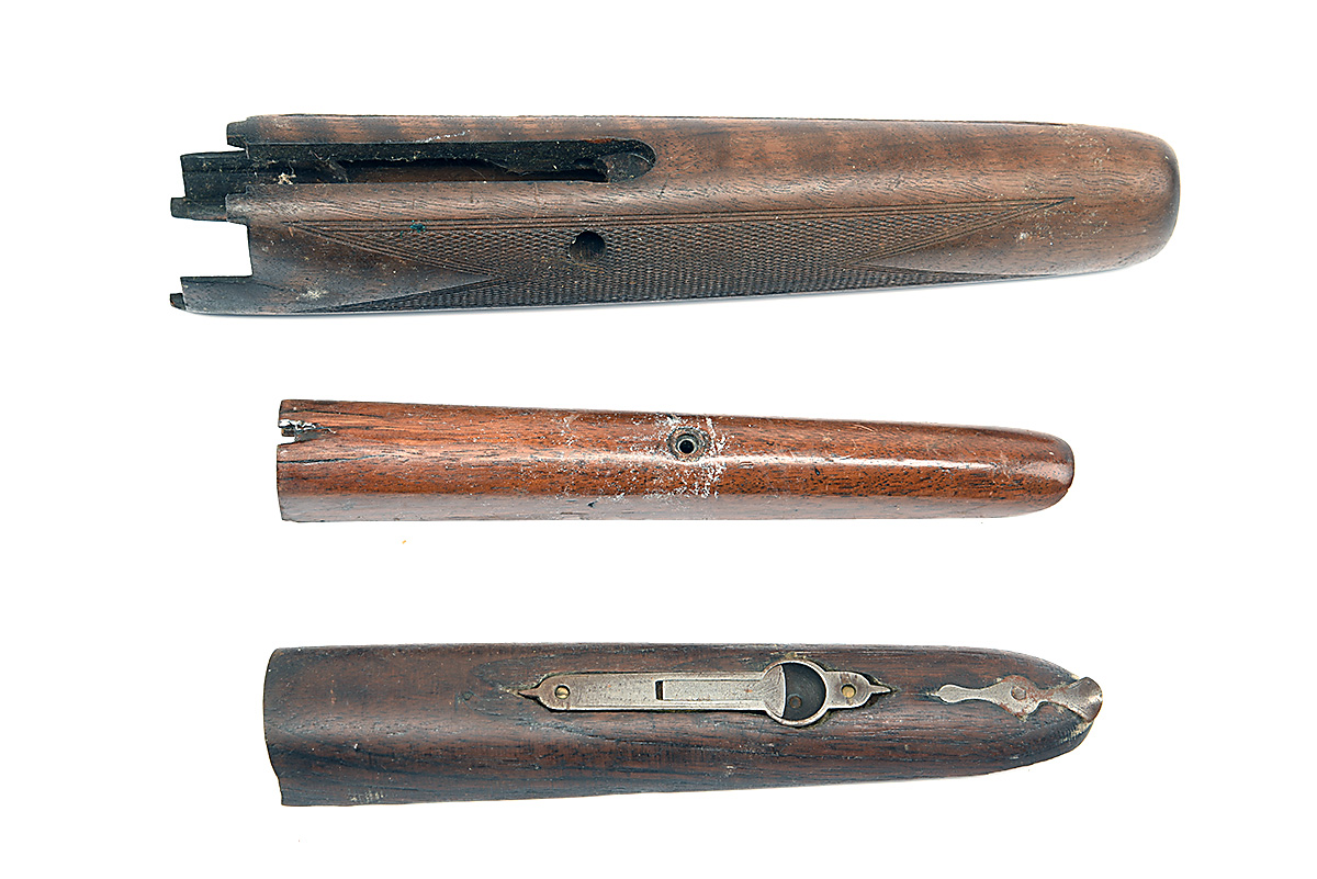 THREE WOODEN FORE-ENDS FOR SHOTGUNS, one each for single barrel, side-by-side and over & under