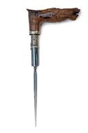 A RARE 4mm PINFIRE DAGGER-REVOLVER IN A WALKING-STICK MOUNT, UNSIGNED, no visible serial number,