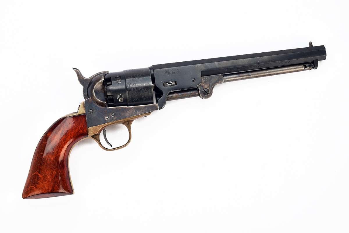 A REPRODUCTION .44 PERCUSSION COLT-TYPE REVOLVER, serial no. 43151, Italian, with blued octagonal 7 1/2in. barrel, blued stepped cylinder, open colour hardened frame and smooth walnut grip