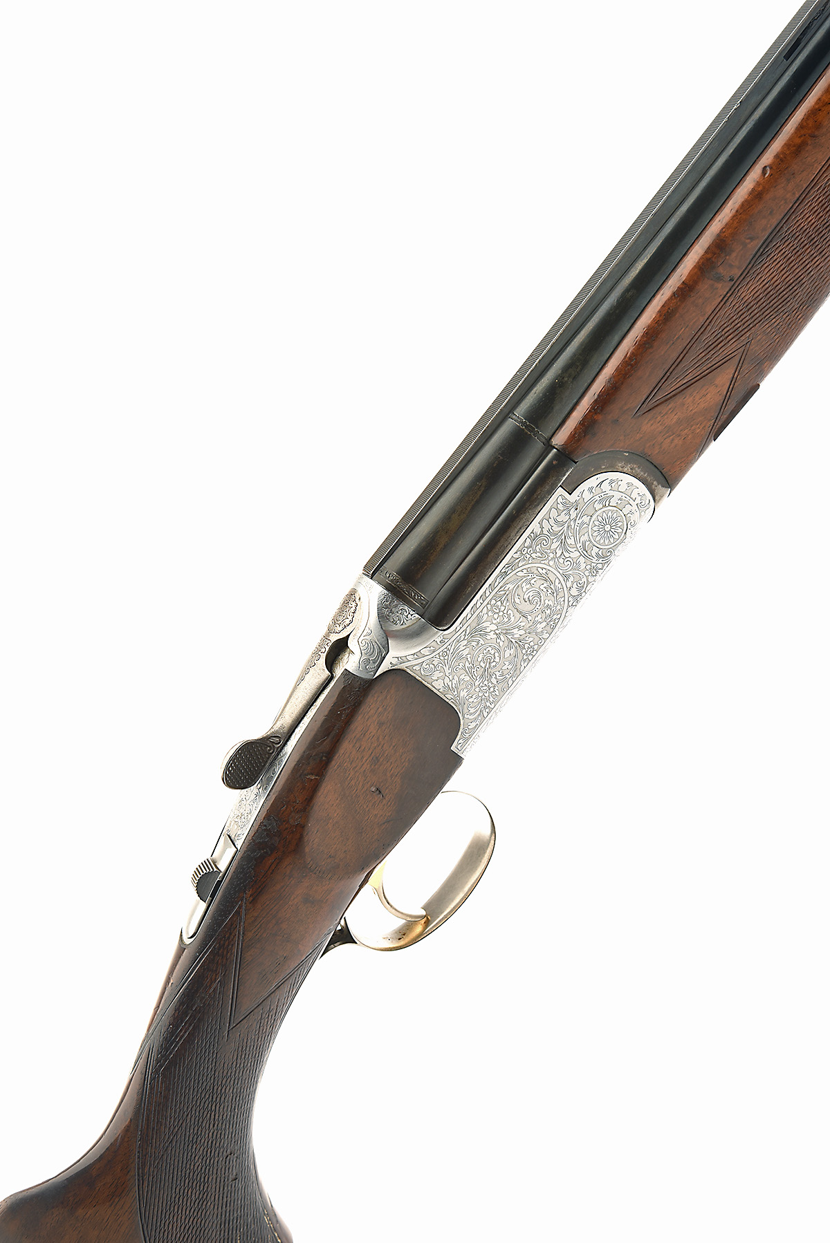 MEDALLIST 20-BORE 'SPORTER' SINGLE-TRIGGER OVER AND UNDER EJECTOR, serial no. 74667, dated 2002, 28in. nitro barrels with 6mm ventilated matt top-rib, 3in chambers, bored approx. 1/4 and 3/4 choke, hold-open toplever, automatic safety with integral barrel selector switch, gold-washed single trigger, foliate scroll engraving, 15in. pistolgrip stock including 1in. ventilated rubber recoil pad, weight 6lb. 8oz.