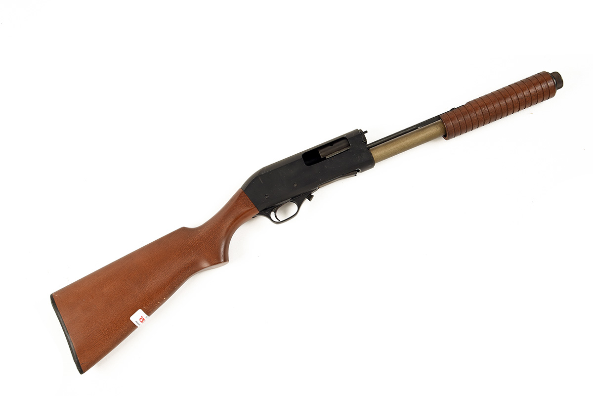 THE STOCK AND ACTION ONLY OF AN F.A.C. UNSIGNED (LIKELY COMMANDO) PUMP-ACTION SHOTGUN, serial no. 615002,