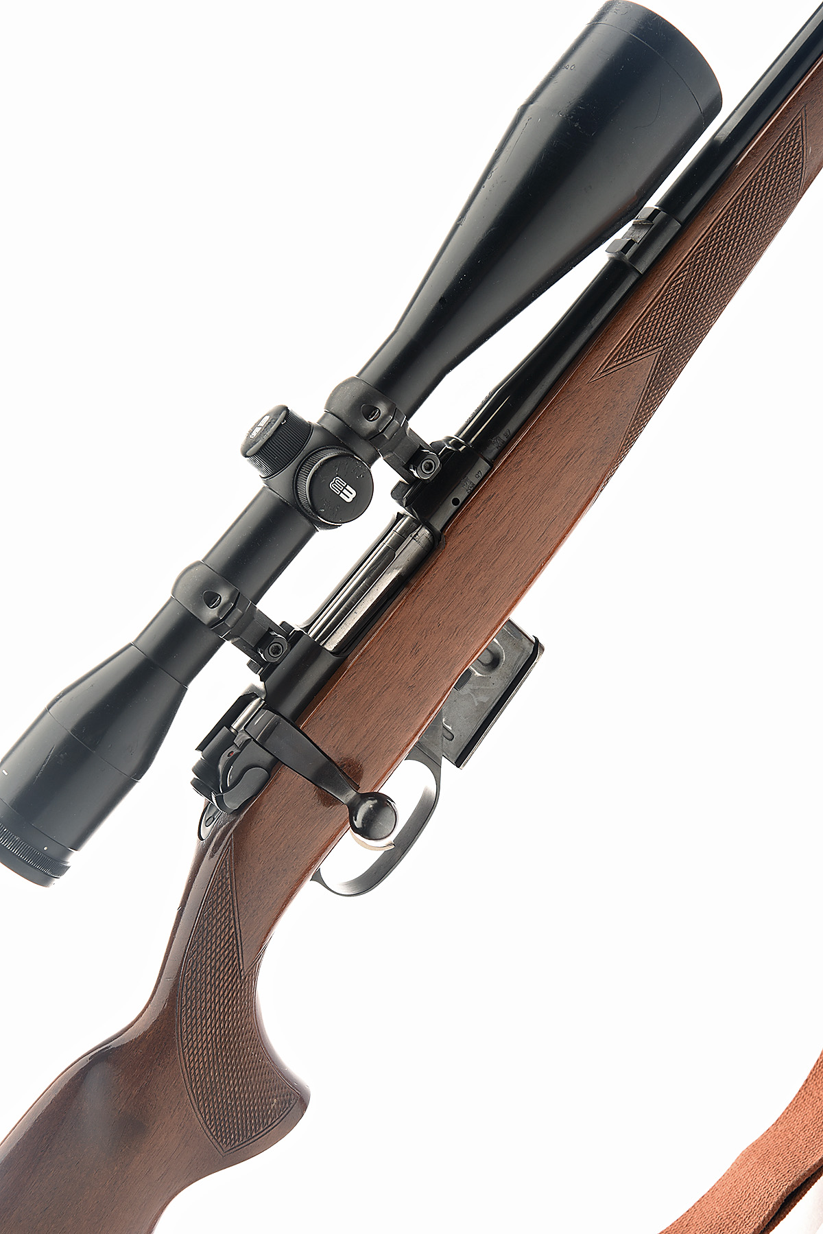 CZ .222 REM '527' BOLT-MAGAZINE SPORTING RIFLE, serial no. 73925, circa 1997, 24in. nitro barrel, ramp-mounted fore-sight, rear-sight missing, fitted with a MeOpta 7x50 A telescopic sight, manual safety, detachable magazine, pistolgrip stock with recoil pad and cheekpiece