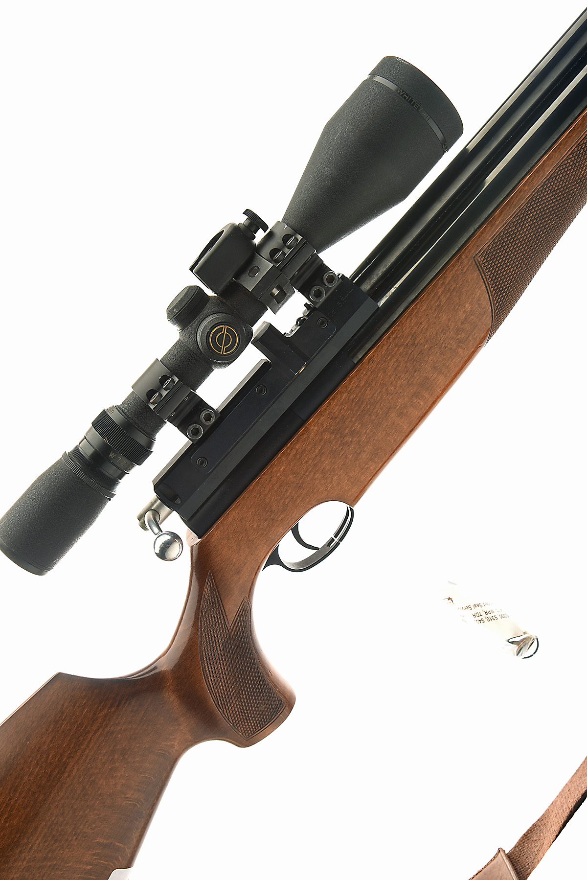 AN FAC-RATED .22 AIR ARMS S410 XTRA FAC PRE-CHARGED PNEUMATIC AIR-RIFLE, serial no. 031457, with 27 1/2in. barrel including full-length sleeve sound moderator with auxiliary chamber, bolt action receiver with magazine, under-barrel air-chamber and chequered beech half-stock, untested, fitted with a Simmons 3.5-10x50 telescopic sight and a canvas sling