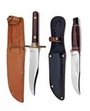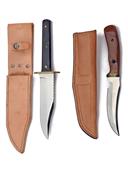 A GROUP OF FIVE SMALLER BOWIE-STYLE SPORTING-KNIVES,