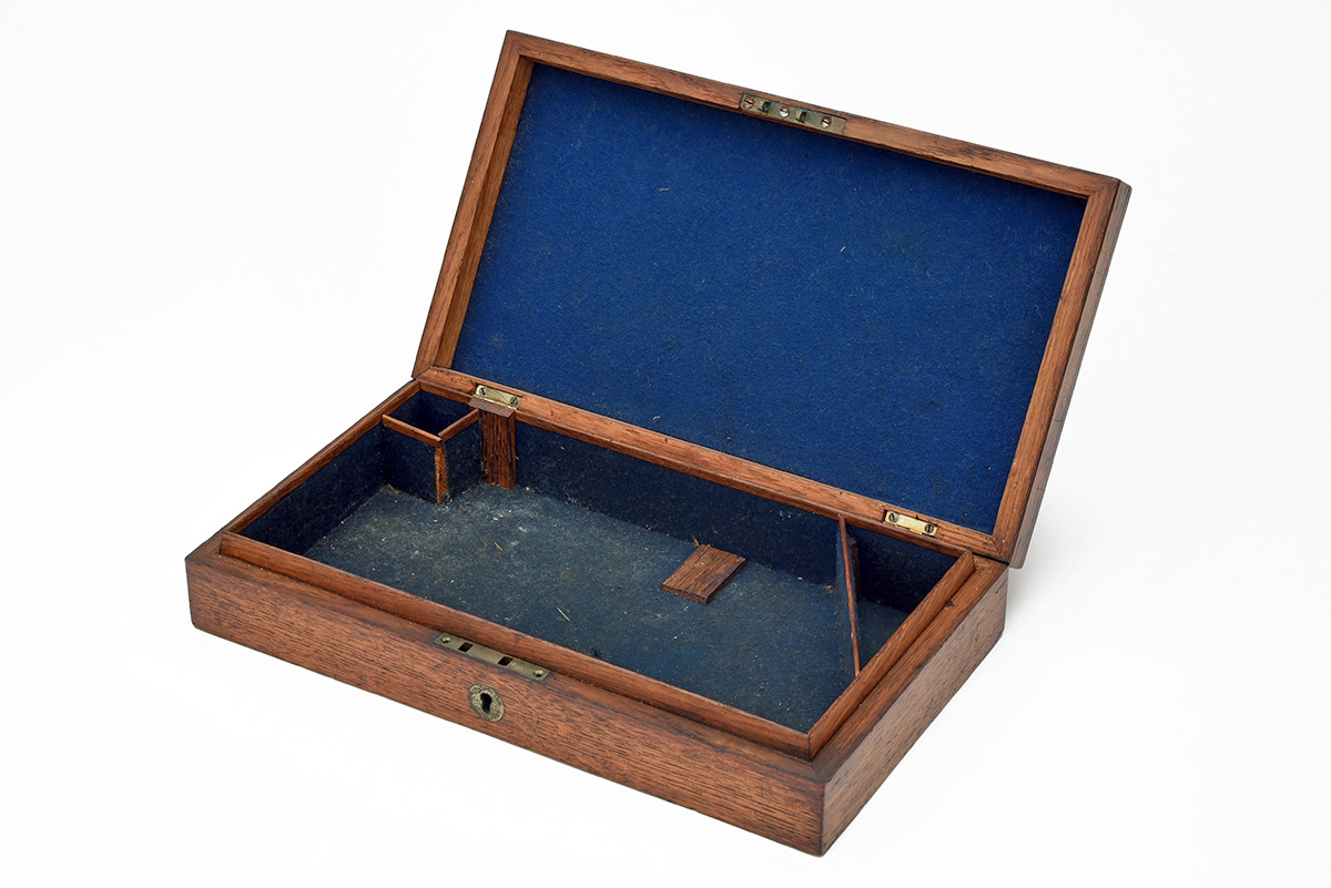 A PERIOD OAK PISTOL CASE,