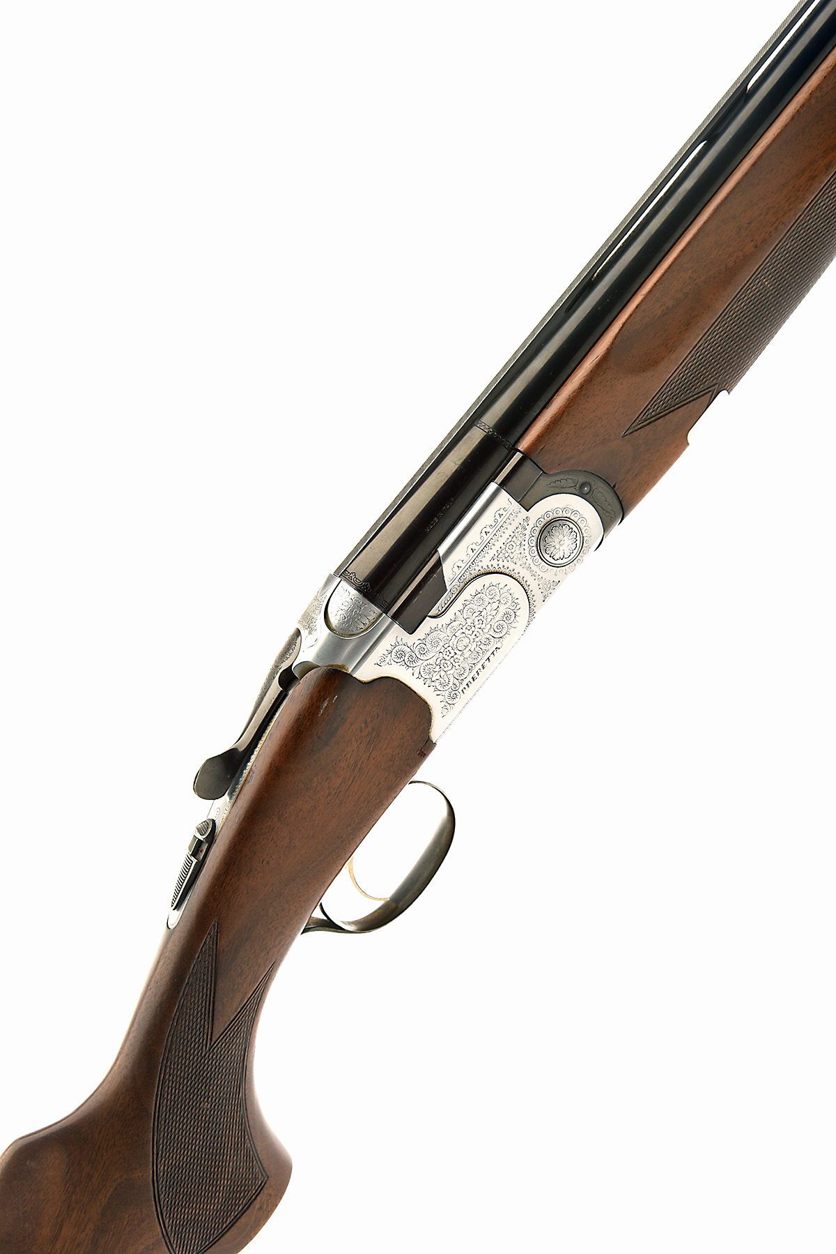 BERETTA 12-BORE 'MOD. S686 SPECIAL' SINGLE-TRIGGER OVER AND UNDER EJECTOR, serial no. F43940B, dated 1989, 28in. nitro barrels with 6mm ventilated matt top-rib, 2 3/4in. chambers, multichokes (no spares), hold-open toplever, automatic safety with integral barrel selector switch, gold-washed single trigger, floral and acanthus scroll engraving, silver finish, 14 1/4in. pistolgrip stock including buttplate, weight 7lb. 1oz.