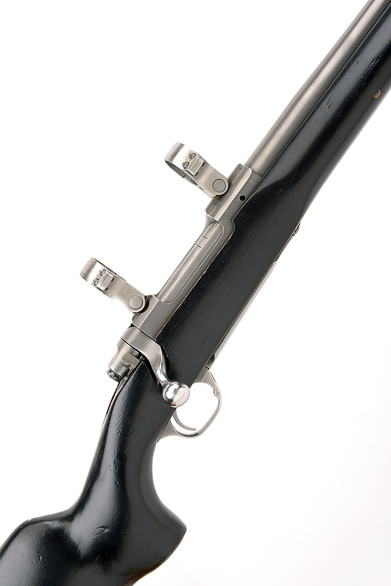 RUGER 22-250 REM. 'M77 MARK II' BOLT-MAGAZINE SPORTING RIFLE, serial no. 783-51357, 26in. unsighted nitro barrel, fitted with 29mm scope rings, manual safety, brushed bright barrel, action and hinged floorplate, 13 5/5in. pistolgrip bench type stock (including recoil pad), sling eyes, including 'BR T8 .25 0408' sound moderator