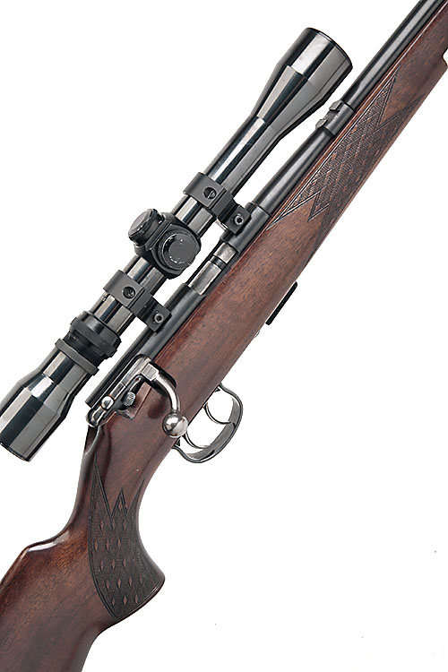 J.G. ANSCHUTZ .22 L.R. 'MODEL 1418' BOLT-MAGAZINE STUTZEN SPORTING RIFLE, serial no. 1249884, 20 1/4in. nitro barrel. threaded for sound moderator, ramp-mounted bead fore-sight, rear-sight missing, fitted with a Weaver V7-II telescopic sight, manual safety, detachable magazine, set triggers, 14 1/4in. pistolgrip stock with cheekpiece, sling swivels