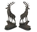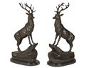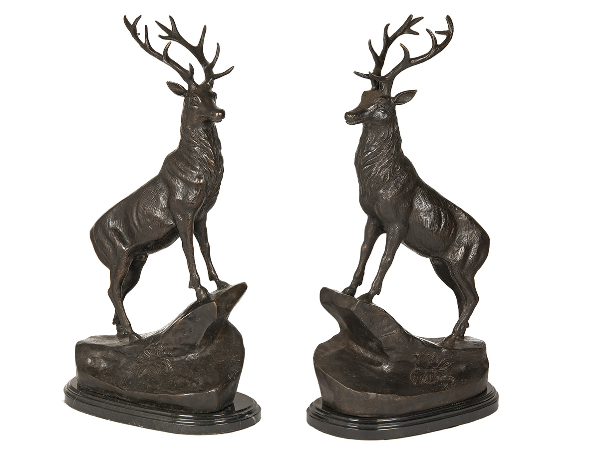 A PAIR OF BRONZE STAGS SIGNED T. MAIGNIERY,