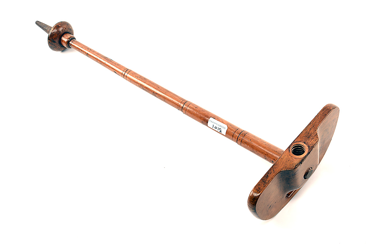 A VINTAGE SHOOTING STICK, oak screw top seat with oak shaft, fixed steel spike, fixed oak ferrule, measuring approx. 33 1/2in.