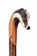 with hardwood shaft, the top carved and painted in the form of a badger head, measuring approx. 54in. in length