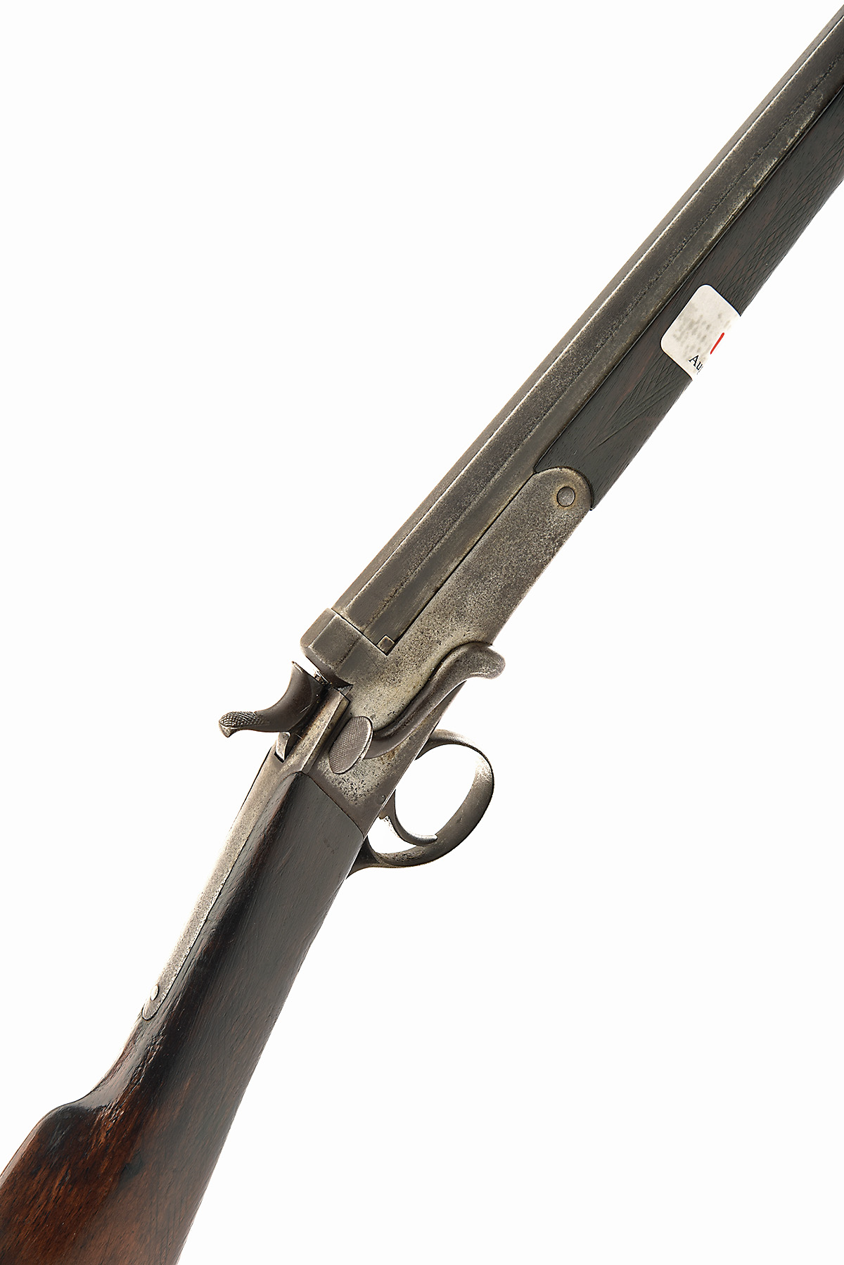 BELGIAN .410 SINGLE-BARRELLED SIDELEVER HAMMERGUN, serial no. ALC 829, circa 1900, 26in. octagonal to round black powder barrel (pitted), 2in. chamber, plain action, 13 1/2in. pull including steel buttplate