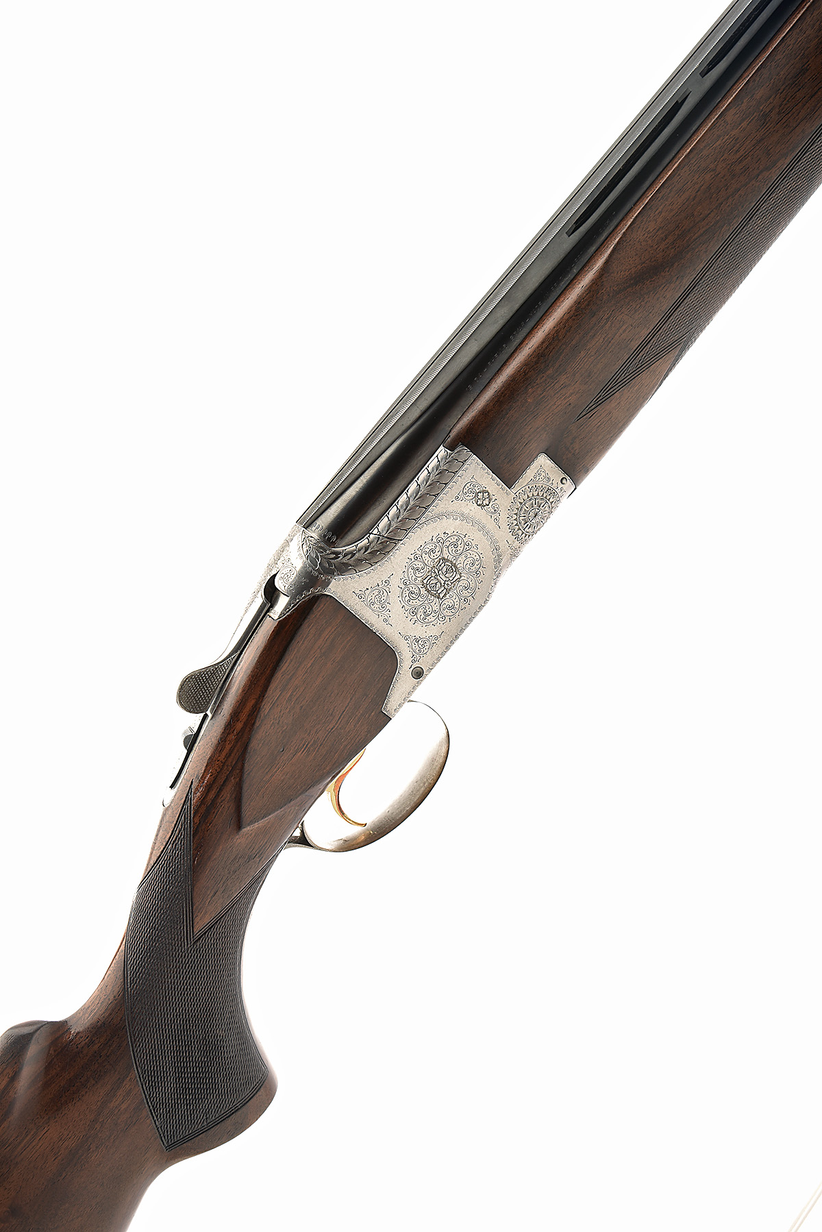 FABRIQUE NATIONALE 12-BORE 'B1' SINGLE-TRIGGER OVER AND UNDER EJECTOR, serial no. 63537 S77, dated 1977, 29 3/4in. nitro barrels with 16mm ventilated matt top-rib, 2 3/4in. chambers, multichokes (no spares), hold-open toplever, manual safety with integral barrel selector switch, gold-washed single trigger, border and partial acanthus scroll engraving, 14 1/4in. pistolgrip stock including 1in. ventilated rubber recoil pad, weight 7lb. 13oz.
