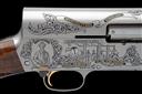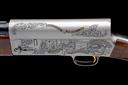 for 1999, restricted magazine, 28in. nitro barrel with 7mm raised ventilated matt rib, 2 3/4in. chamber, multichoke (with spares), manual push-button safety, gold-washed trigger, magazine cut-off switch, silver receiver engraved with bold acanthus flourishes with pennants gold-inlaid with 'PATENT No. 659507 FEBRUARY 8, 1900', 'LIMITED SERIES ONE OF FIVE HUNDRED', 'MANUFACTURED SINCE 1903' and 'FINAL TRIBUTE 12 OR 12M GAUGE', the right side with engraved scenes of the J.M. Browning & Bro. store and a vignette of J.M. Browning, the left with a vignette of the Herstal manufacturing plant and a man inspecting an auto-5, 14 1/4in. figured semi-pistolgrip stock including trademark buttplate, weight 8lb. 13oz., in its canvas and leather case