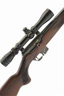 BRNO .22 L.R. 'MOD 581' SELF-LOADING SPORTING RIFLE, serial no. 45394, circa 1976, 22in. nitro barrel, threaded for sound moderator, sights missing, fitted with a Redfield 2x-7x telescopic sight, manual safety, detachable magazine,. pistolgrip stock with recoil pad, leather sling