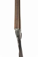 CHARLES LANCASTER 12-BORE ASSISTED-OPENING BACK-ACTION SIDELOCK EJECTOR, serial no. 7381, for 1894, 28in. nitro reproved damascus barrels, the rib engraved 'CHARLES LANCASTER. 151 NEW BOND ST. LONDON. PATENT EJECTOR' and '1', 2 1/2in. chambers, bored approx. imp. cyl. and 1/4 choke, toplever engraved '1', automatic safety, striker discs, fine acanthus scroll engraving, 14 3/8in. figured stock including 7/8in. wooden extension (chipped at toe), fore-end with grip-catch release lever engraved '1', weight 6lb. 6oz., in a leather case