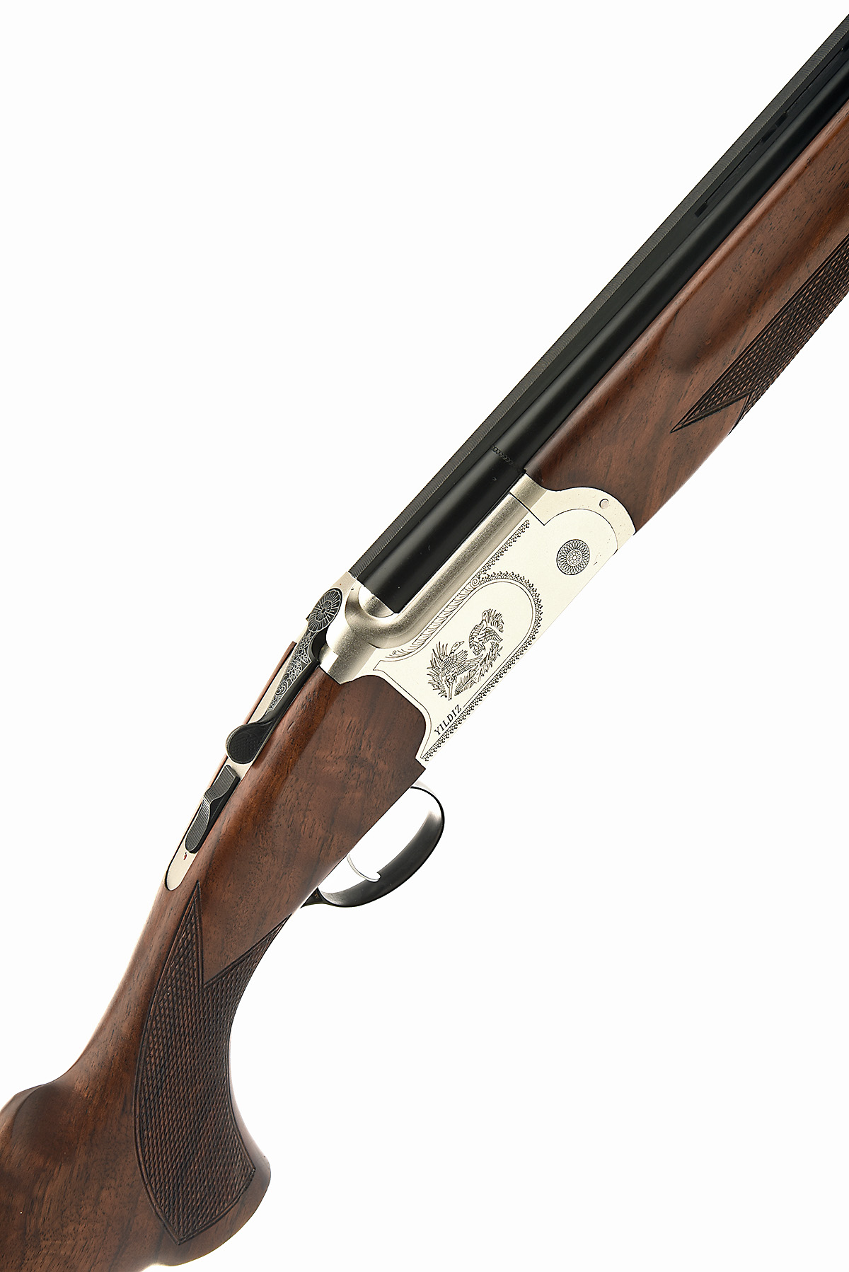 YILDIZ SILAH SANAYII 20-BORE 'NBD TS 870' SINGLE-TRIGGER OVER AND UNDER EJECTOR, serial no. U11398, for 2009, 28in. nitro reproved barrels with 8mm ventilated matt top-rib, 3in. chambers, multichokes (with spares), hold-open toplever, manual safety with integral barrel selector, matt silver finish with game scenes, 14 3/4in. pistolgrip stock including recoil pad, weight 6lb. 1oz., in its carton