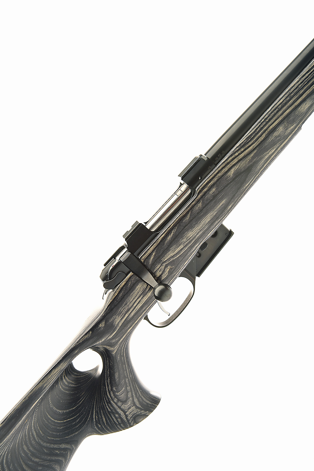 CZ .17 HORNET 1:9" 'MODEL 527 VARMINT' BOLT-MAGAZINE SPORTING RIFLE, serial no. C555923, for 2001, 26in. unsighted nitro barrel, threaded for sound moderator with muzzle thread cap, manual safety, detachable box magazine, blued finish, laminate pistolgrip thumbhole halfstock, with cheekpiece, 14 1/2in. pull including rubber recoil pad, sling eyes, weight 8lb. 1oz., the whole appearing little used