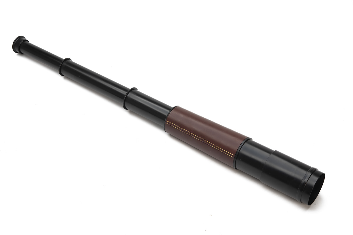 A LEATHER-BOUND THREE-DRAW STALKING TELESCOPE, serial no. 3193,