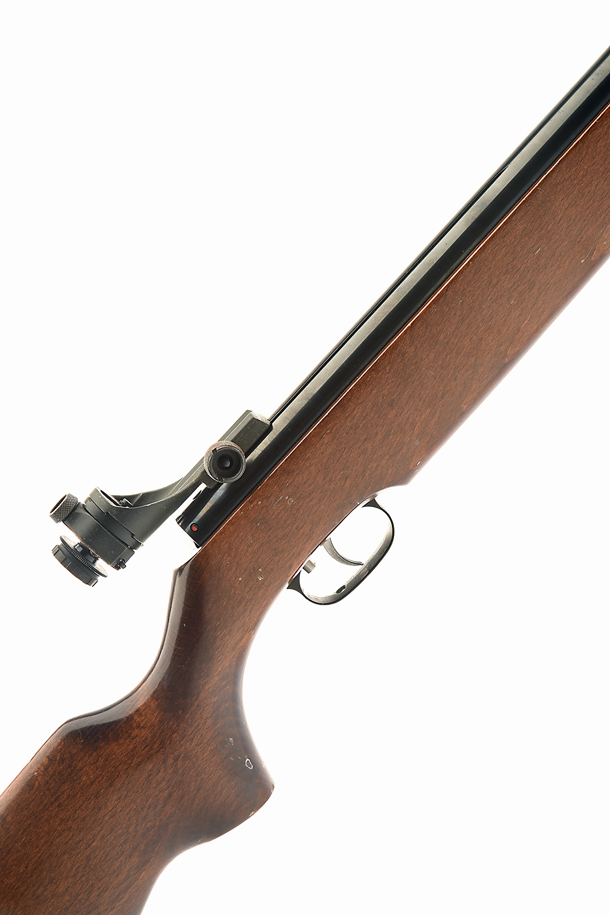 A .177 WEIHRAUCH HW57 UNDER-LEVER AIR-RIFLE, serial no. 1575727, with blued 14 1/2in. barrel, nose-cap with integral fore-sight, pop-up breech, blued air-chamber fitted with a diopter rear-sight, beech half-stock
