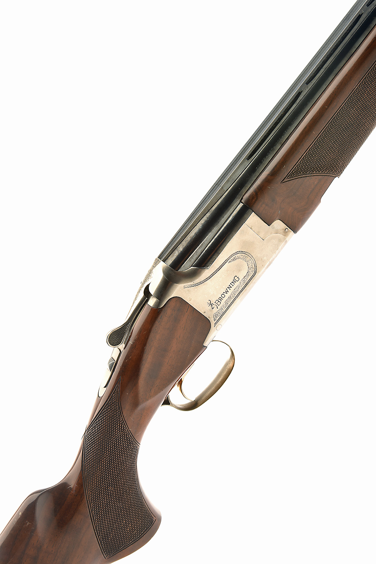BROWNING 12-BORE '325 GRADE I' SINGLE-TRIGGER OVER AND UNDER EJECTOR, serial no. 38239NX, dated 1993, 28in. nitro barrels with 13mm ventilated matt top-rib, 2 3/4in. chambers, multichokes (no spares), hold-open toplever, manual safety with integral barrel selector switch, gold-washed adjustable single trigger, partial engraving, 13 1/4in. pistolgrip stock including 3/4in. rubber recoil pad, weight 7lb. 7oz.