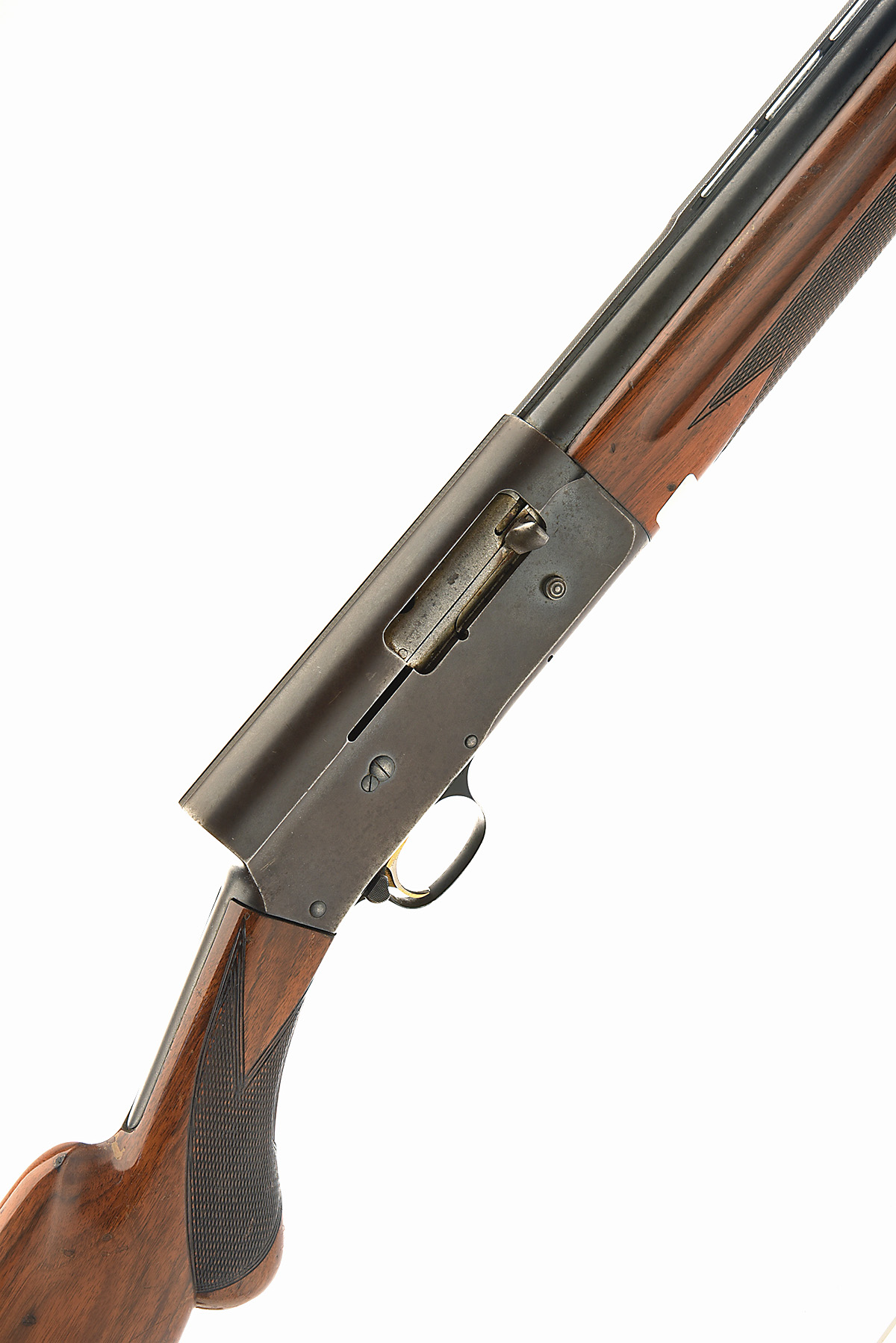 AN F.A.C.-RATED FN BROWNING 12-BORE 'AUTO 5 - LIGHT TWELVE' SEMI-AUTO SHOTGUN, serial no. 6366033 dated 1963, 27 1/2in. nitro barrel with 7mm ventilated matt top-rib, 2 3/4in. chamber, bored approx. full choke, manual push-button safety, magazine cut-off switch, gold-washed trigger, blacked action engraved 'LIGHT TWELVE' in cursive and with the FN logo, 14 1/4in. semi-pistolgrip stock including trademark buttplate, weight 7lb. 15oz.