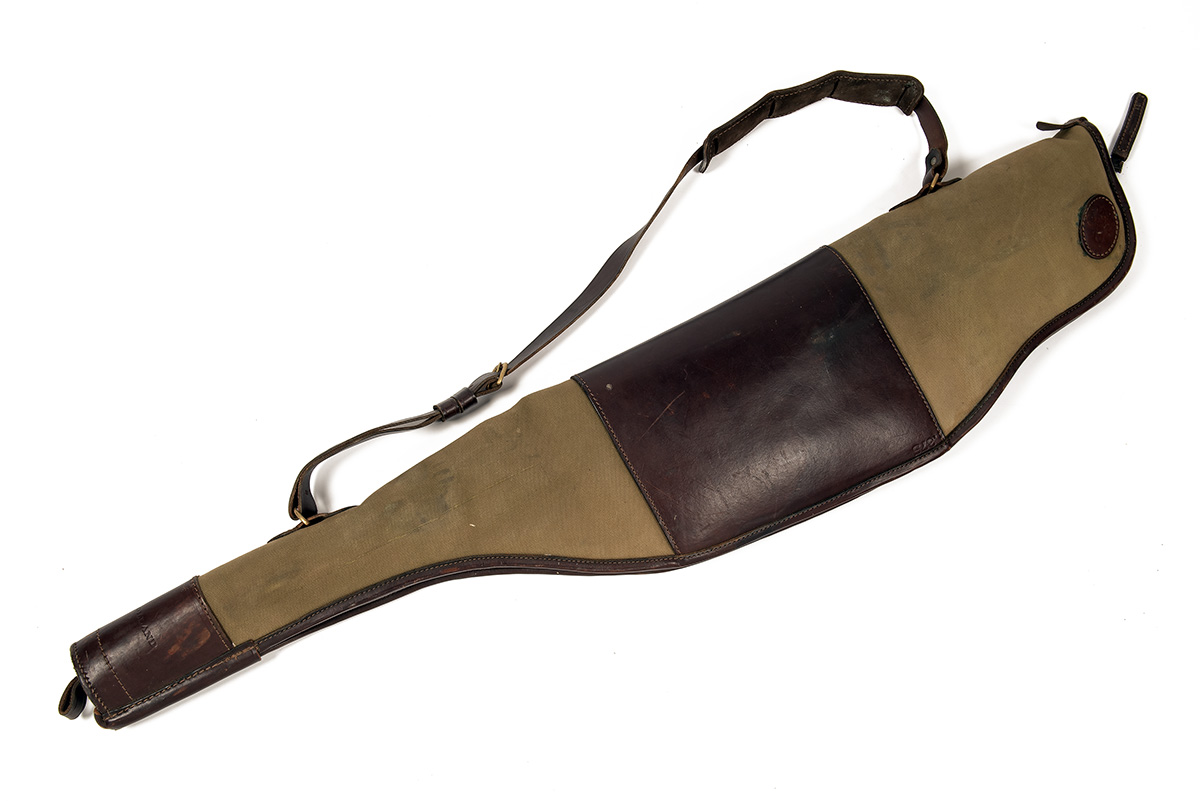 A FLEECE-LINED CANVAS AND LEATHER SINGLE RIFLE SLIP,