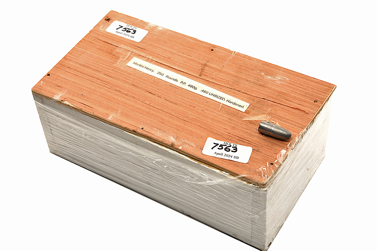 250 X UNSIZED .480 MARTINI-HENRY P.P. 490G HARDENED LEAD BULLETS, in a wooden box